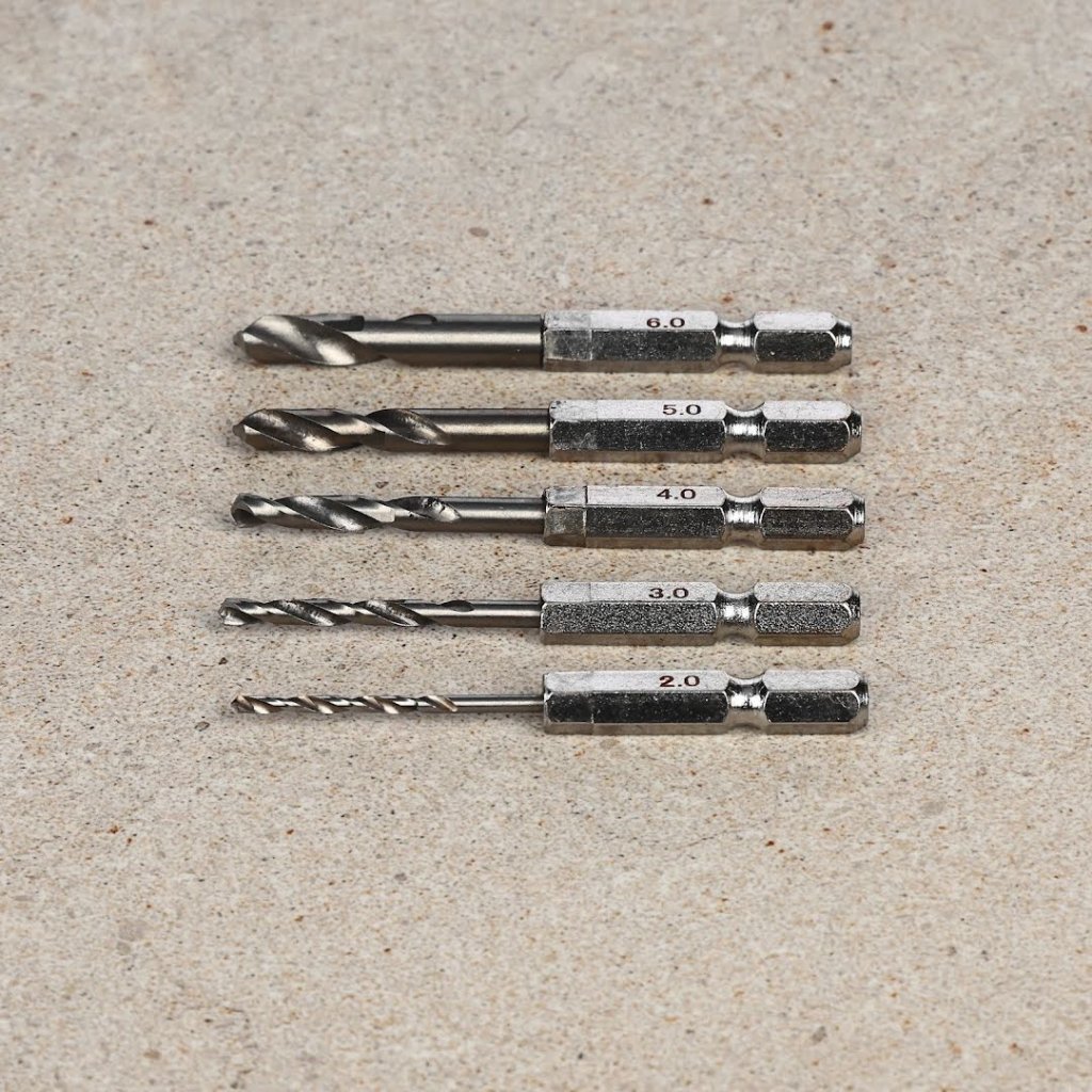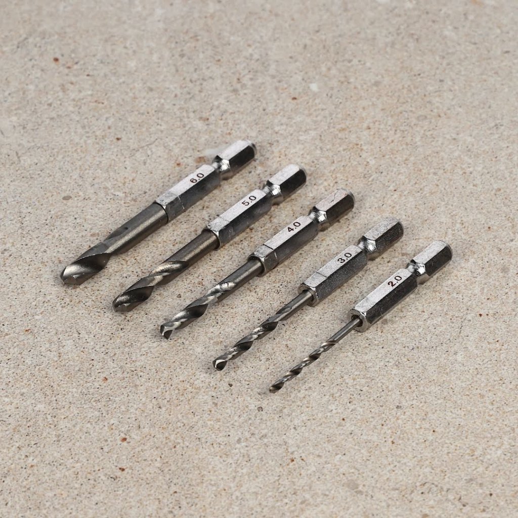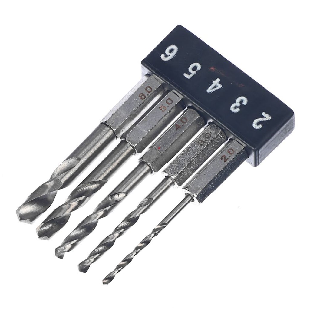 ✅ Obsahuje pět vrtáků v rozměrech od 2,0 mm do 6,0 mm