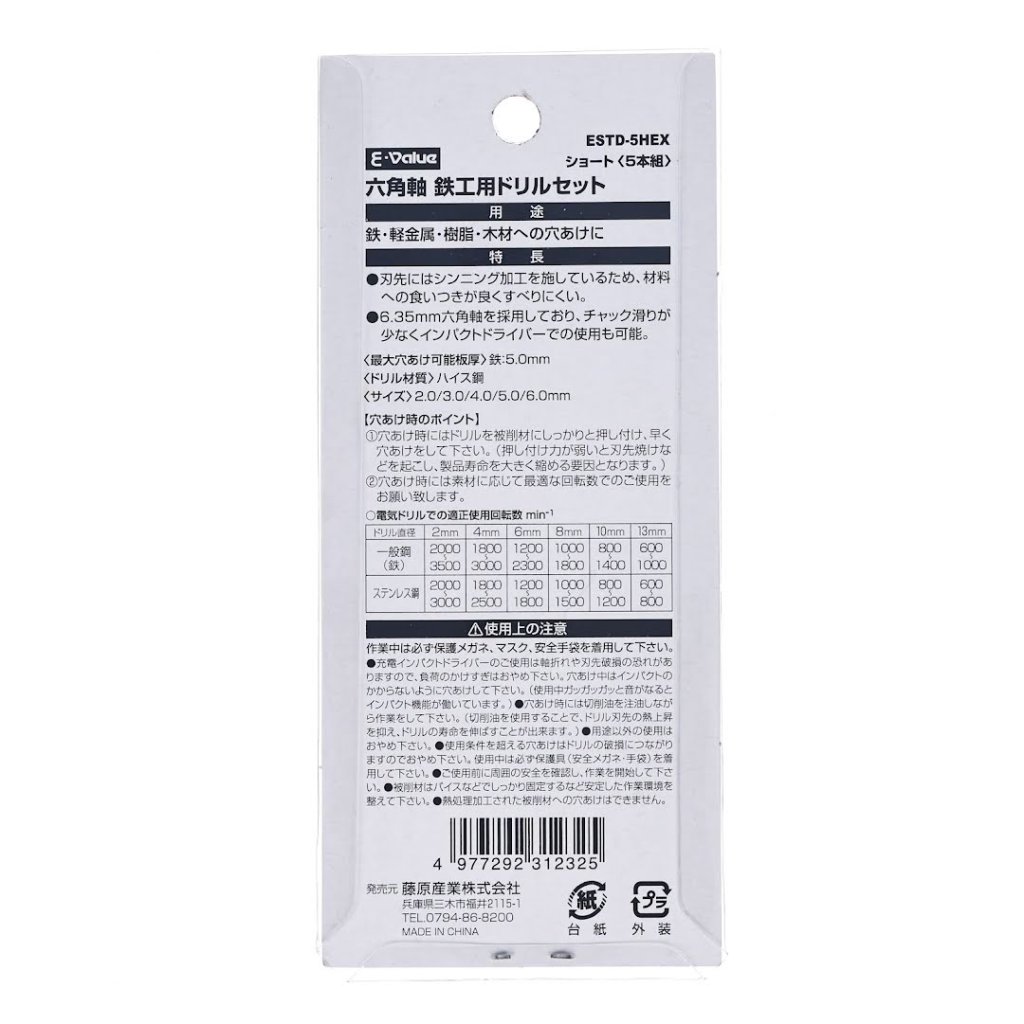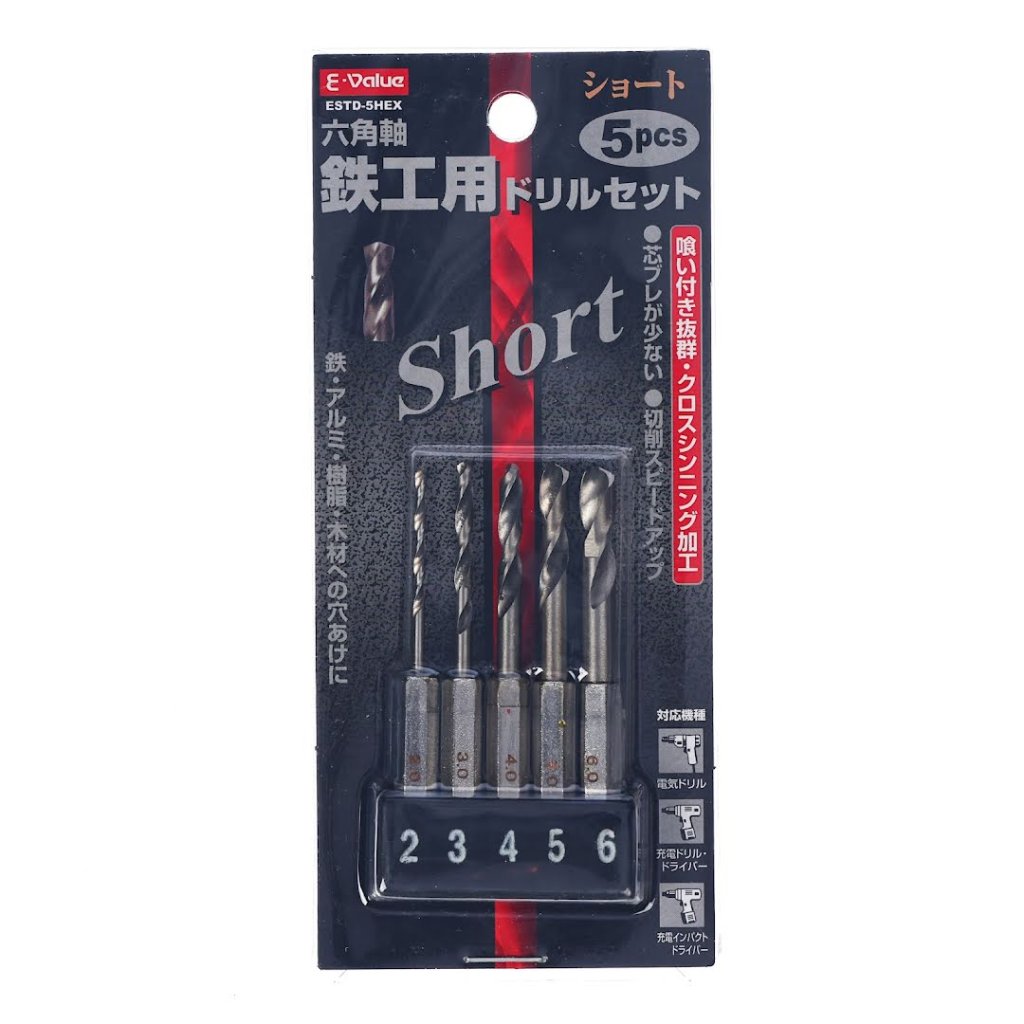 4 dílná sada krátkých vrtáků do kovu E-VALUE, model ESTD-5HEX, je ideální pro vrtání do železa, hliníku, pryskyřice a dřeva. Tato sada obsahuje pět vrtáků v rozměrech od 2,0 mm do 6,0 mm, což z ní činí univerzální nástroj pro různé úkoly. Díky 6,35 mm šestihranné stopce je minimalizováno prokluzování ve sklíčidle a je kompatibilní s rázovými utahováky. Navíc mají vrtáky proces ztenčování aplikovaný na špičky, což zvyšuje pevnost uchopení a snižuje prokluzování na materiálech.