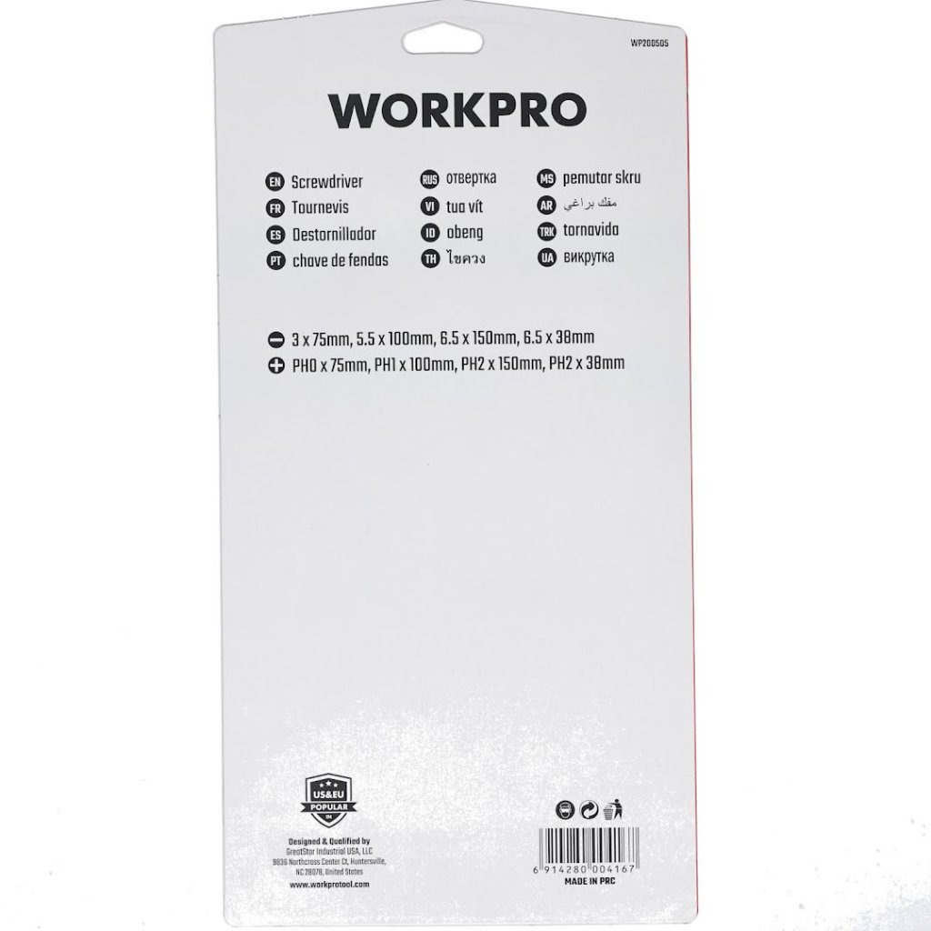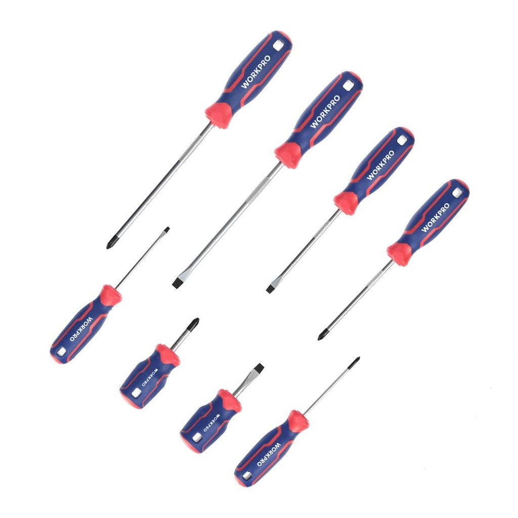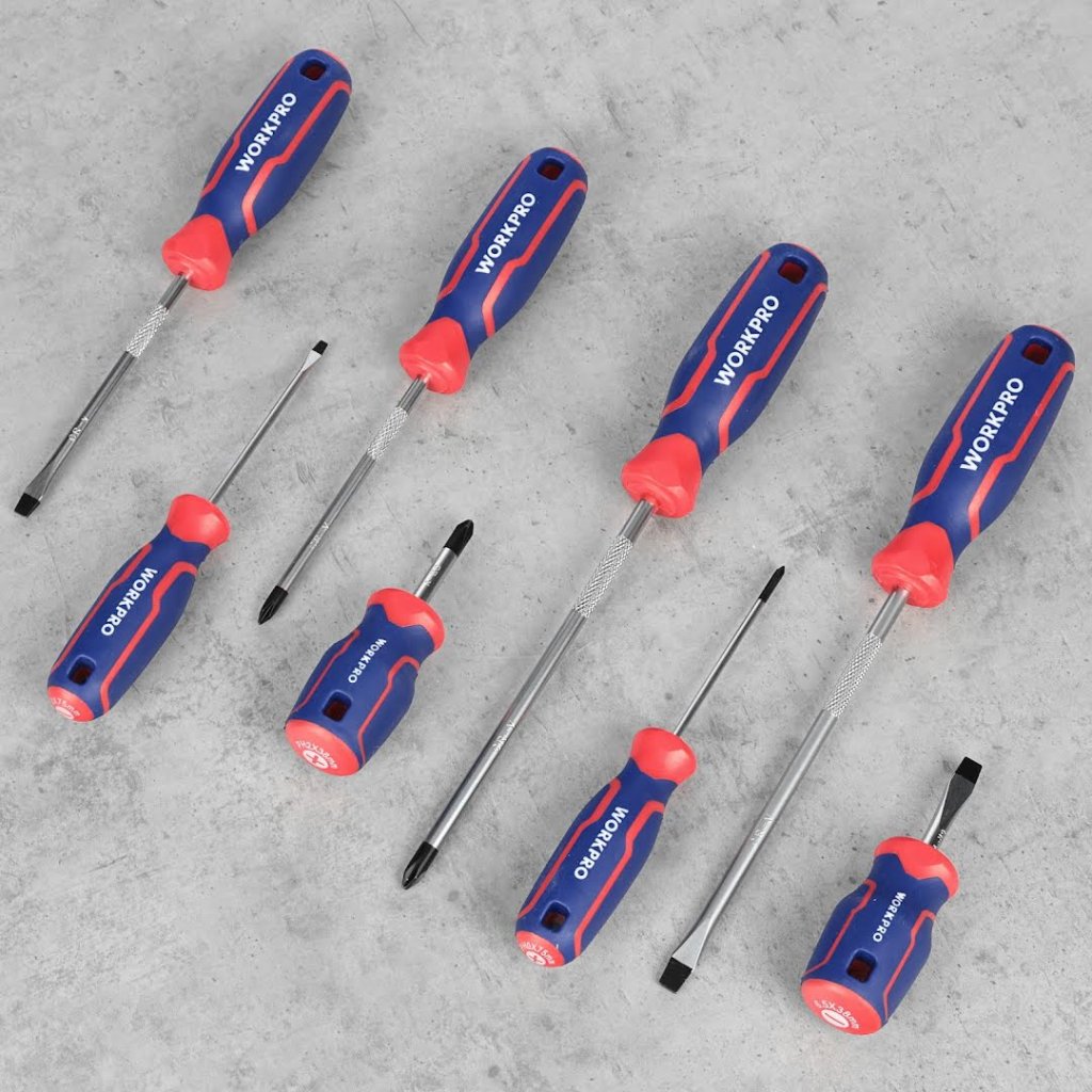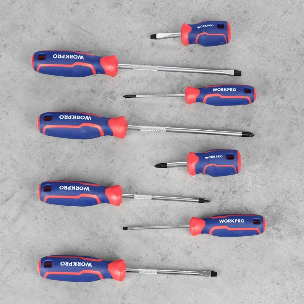 Sada šroubováků od WORKPRO je všestranná sada určená pro každou vaši potřebu v oblasti šroubování, ať už křížových nebo plochých šroubů. V sadě najdete 4 ploché a 4 křížové šroubováky různých velikostí, tak aby pokryly širokou škálu velikostí šroubů.
