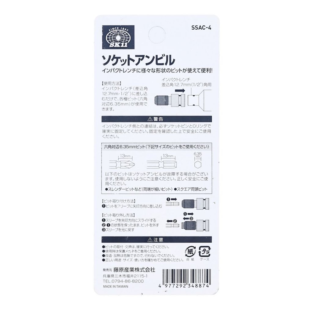 Adaptér SK11, model SSAC-4, umožňuje použití šestihranných bitů s bouracím vrtacím kladivem. Tento všestranný nástroj disponuje mechanismem rychloupínání, který umožňuje snadnou instalaci jednoduše vložením bitu bez potřeby zatažení objímky. Je navržen pro vrtačky s 1/2 palcovým (12,7 mm) čtyřhranem a pojme 6,35 mm šestihranný dřík.