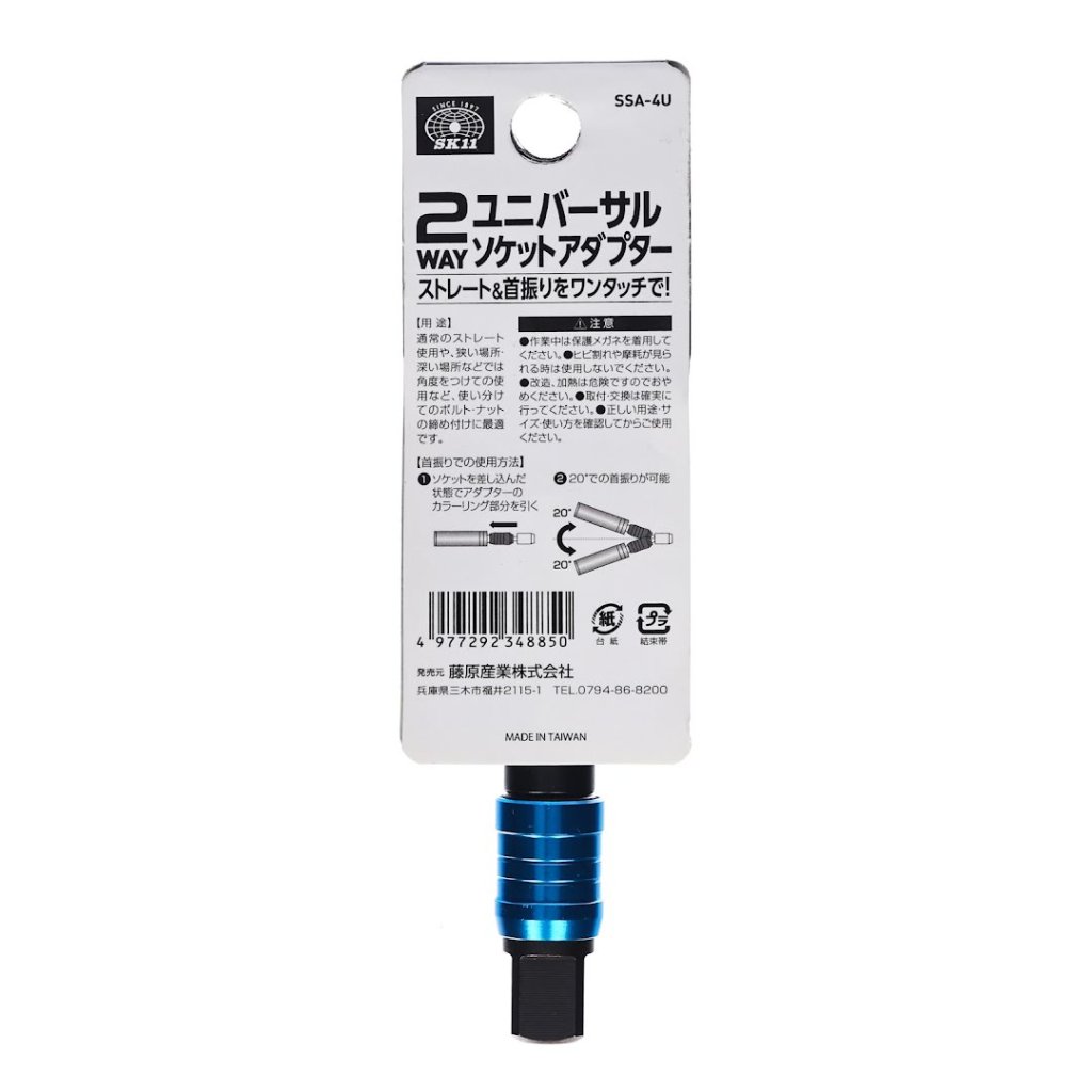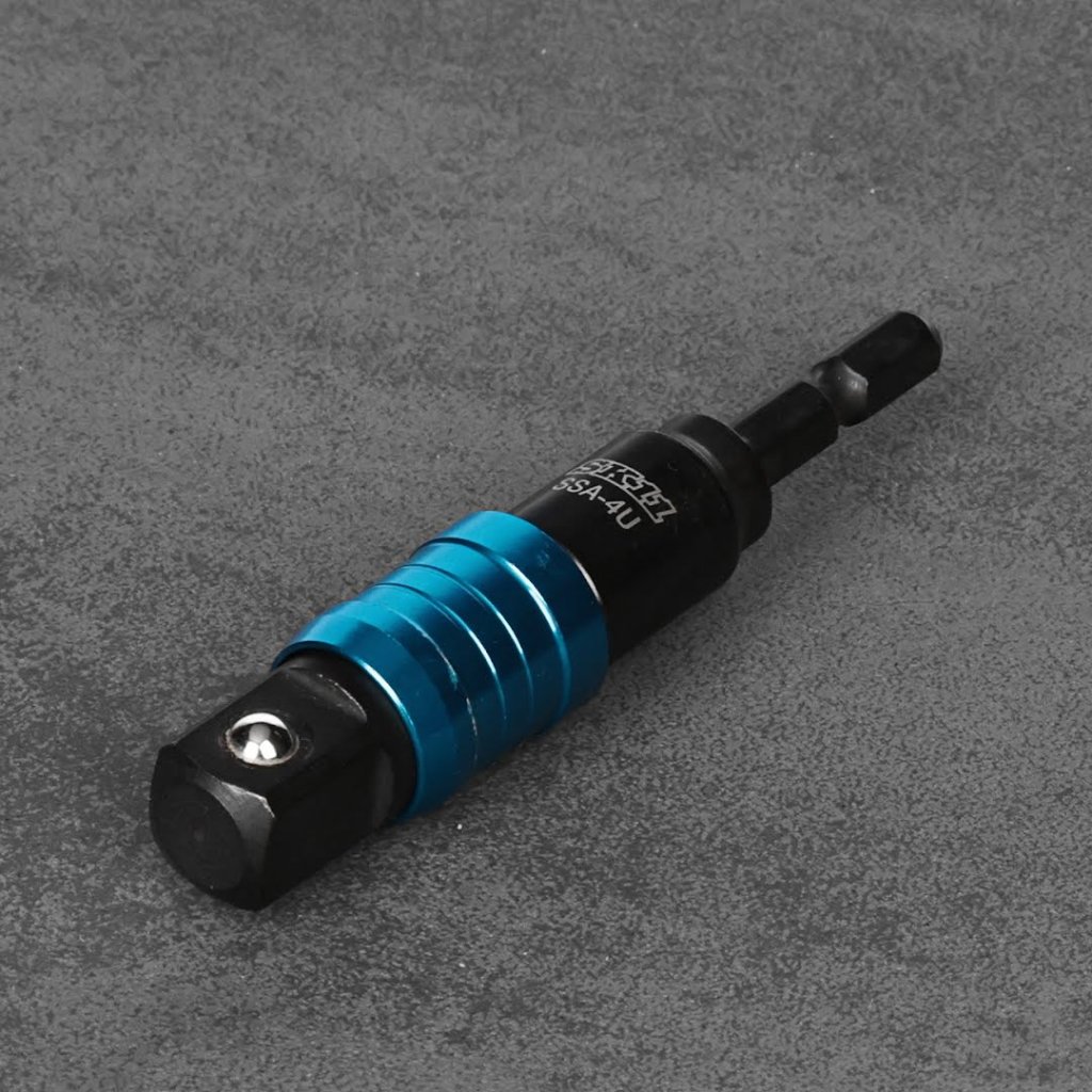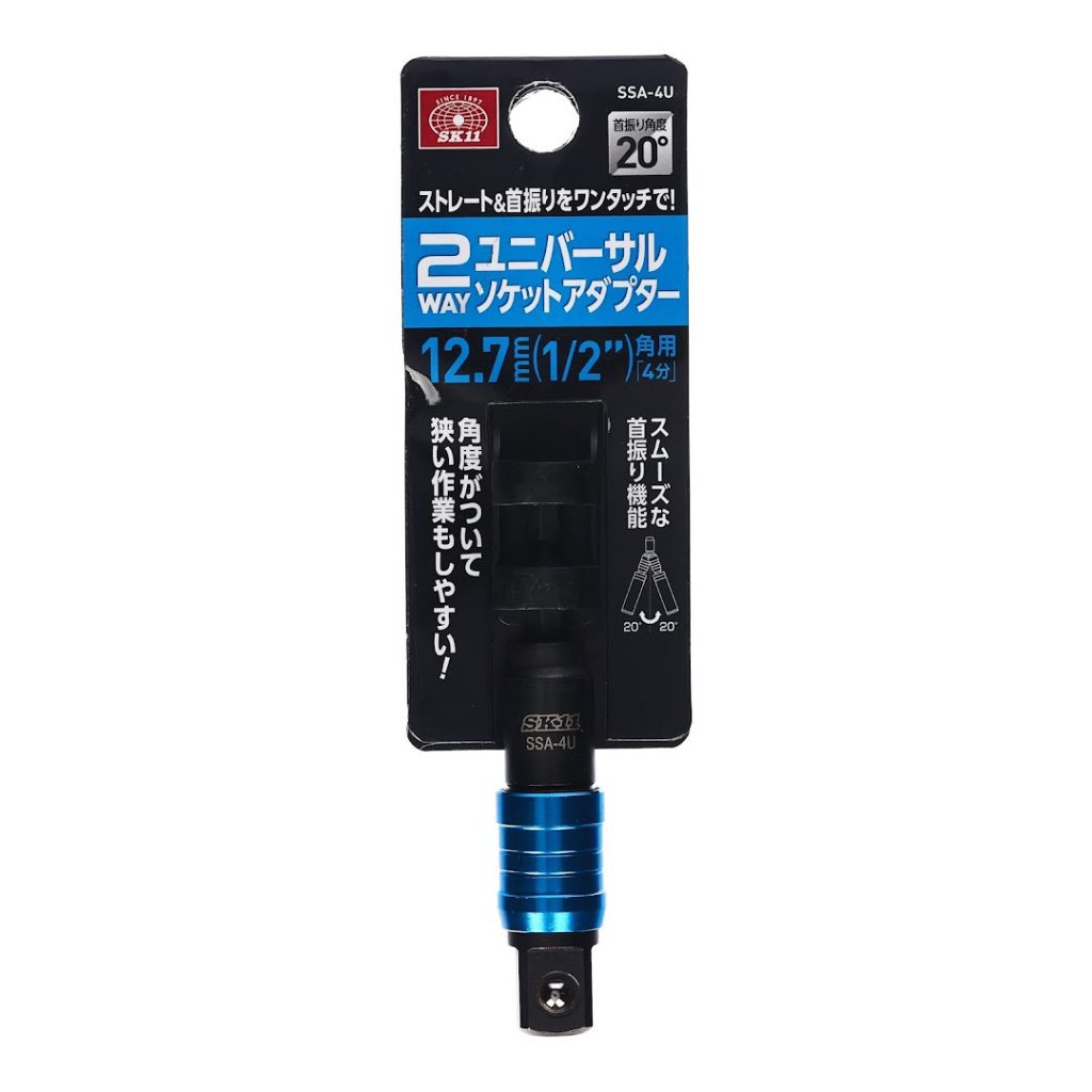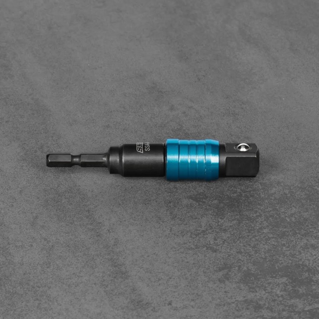 Adaptér s kloubem SK11, model SSA-4U, je nezbytným nástrojem pro zvýšení všestrannosti elektrických nástrojů. Navržen pro použití s nástrčnými klíči různých výrobců, tento nástavec je ideální pro úzké a náročné pracovní prostory díky 20stupňovému úhlu výkyvu. Velikost pohonu 12,7 mm (1/2 palce) a 6,35 mm šestihranná stopka zajišťují kompatibilitu a bezpečné upevnění během používání.