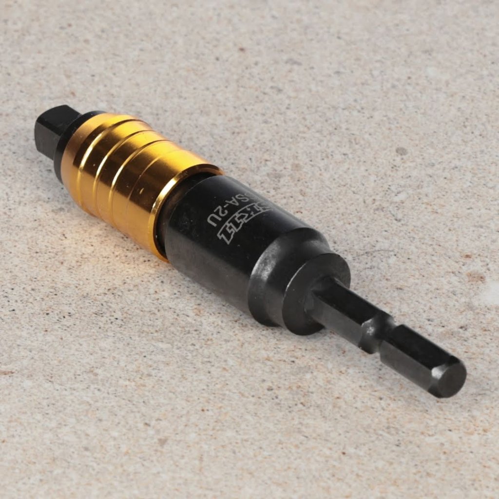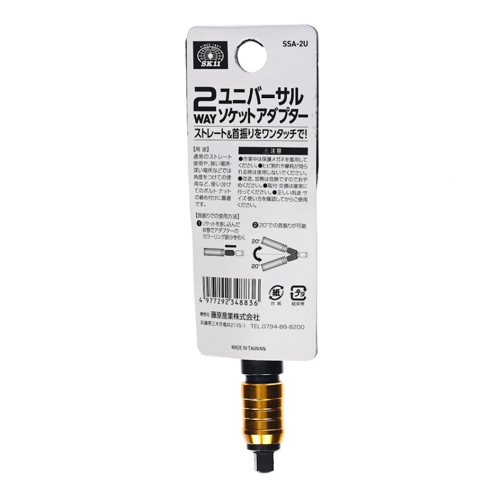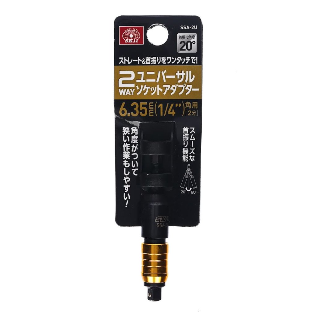 Adaptér s kloubem SK11, model SSA-2U, je nezbytným nástrojem pro zvýšení všestrannosti elektrických nástrojů. Navržen pro použití s nástrčnými klíči různých výrobců, tento nástavec je ideální pro úzké a náročné pracovní prostory díky 20stupňovému úhlu výkyvu. Velikost pohonu 6,35 mm (1/4 palce) a 6,35 mm šestihranná stopka zajišťují kompatibilitu a bezpečné upevnění během používání.