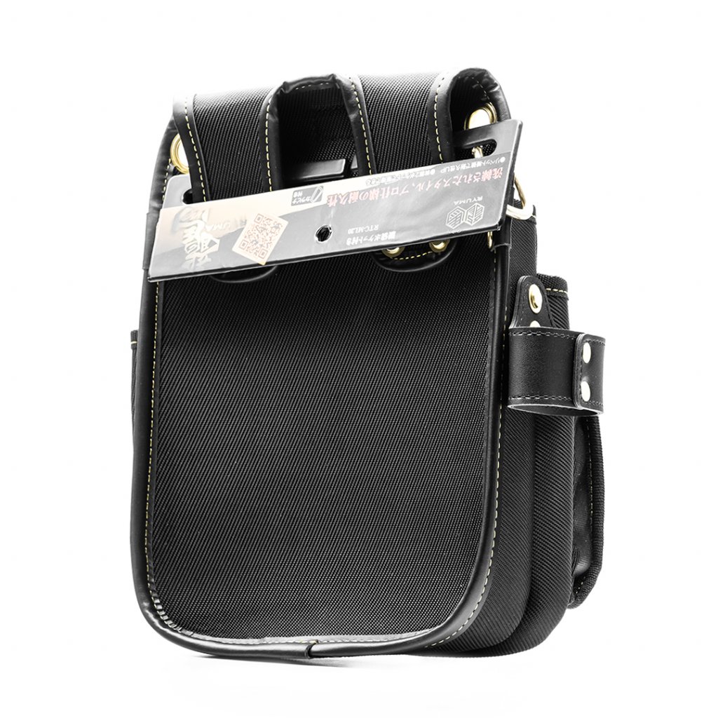 Nylonová brašna pro řemeslníky od značky RYUMA, kterou snadno připevníte na opasek. K brašně je připevněna kovová karabina a poutko s popruhem na lepicí pásku.