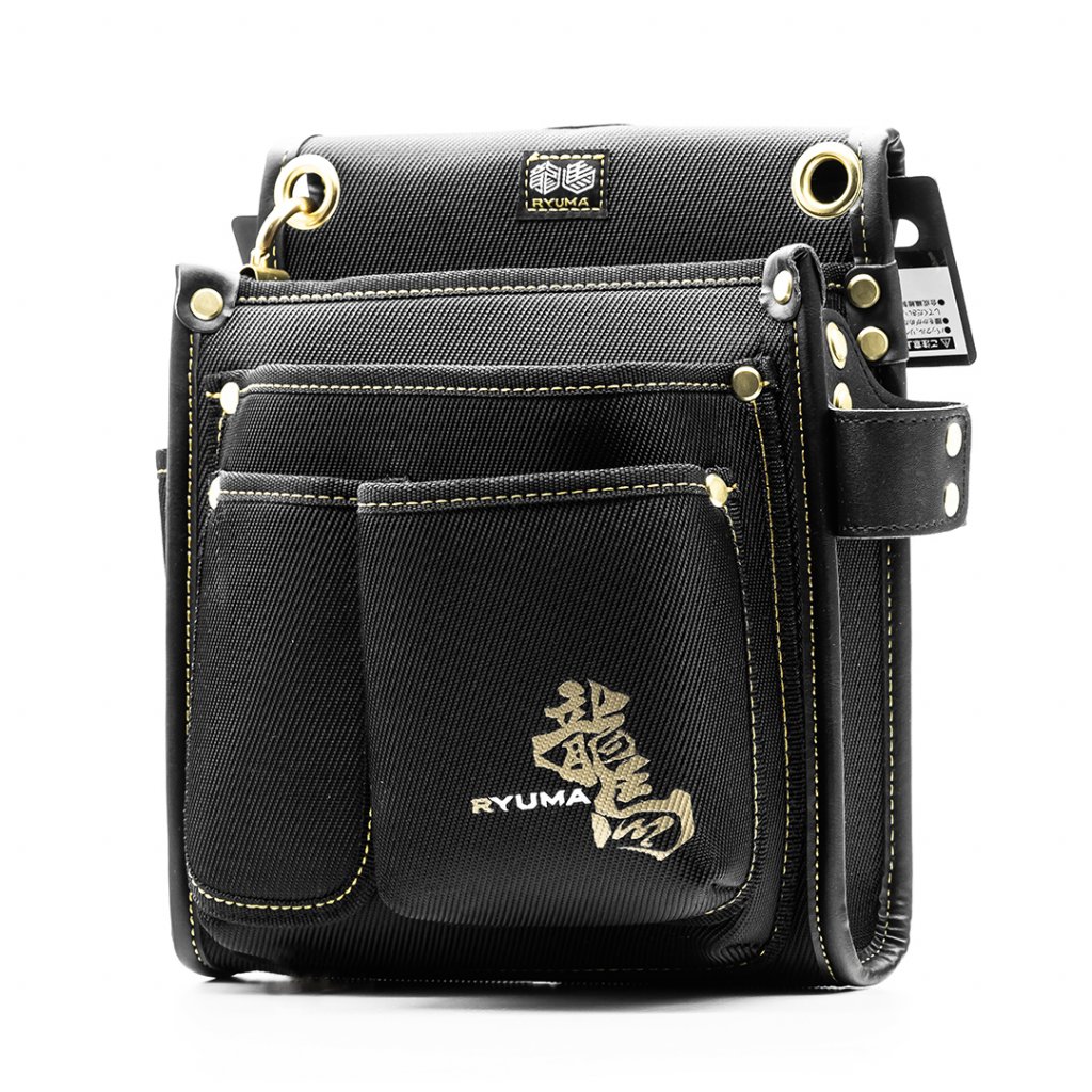 Pracovní pouzdro pro řemeslníky od značky RYUMA, kterou snadno připevníte na opasek. K brašně je připevněna malá karabina a poutko s popruhem na lepicí pásku.