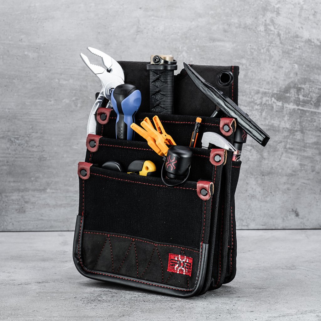 Brašna pro řemeslníky od značky SK11 typu SPIDER, kterou snadno připevníte na opasek či pracovní popruhy. Brašna má ve středu 3 velké kapsy a 2 z nich uvnitř rozdělené na 2 menší, což nám umožňuje uložit nářadí a např. spojovací materiály separátně. Jedna kapsa po každé straně. K brašně jsou připevněna 2 kovová poutka pro zavěšení lepící pásky nebo karabiny.