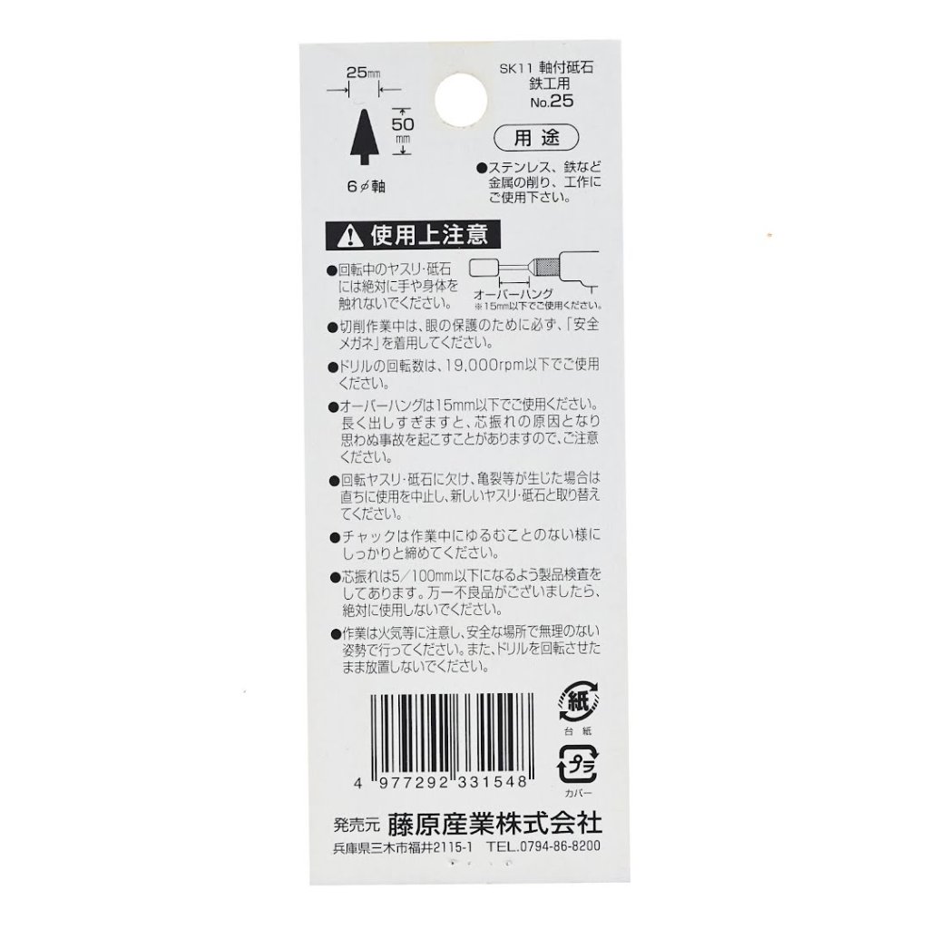 Brusný kámen kuželového tvaru SK11 je ideální pro broušení a opracování železa, lehkých kovů a nerezové oceli. Tento nástroj má průměr hřídele 6 mm a je navržen pro použití s elektrickými vrtačkami a pneumatickými bruskami. Kámen má šířku 25 mm a délku 50 mm a zrnitost WA60P. Pro optimální výkon zajistěte, aby rychlost vrtačky nepřesáhla 19000 otáček za minutu.