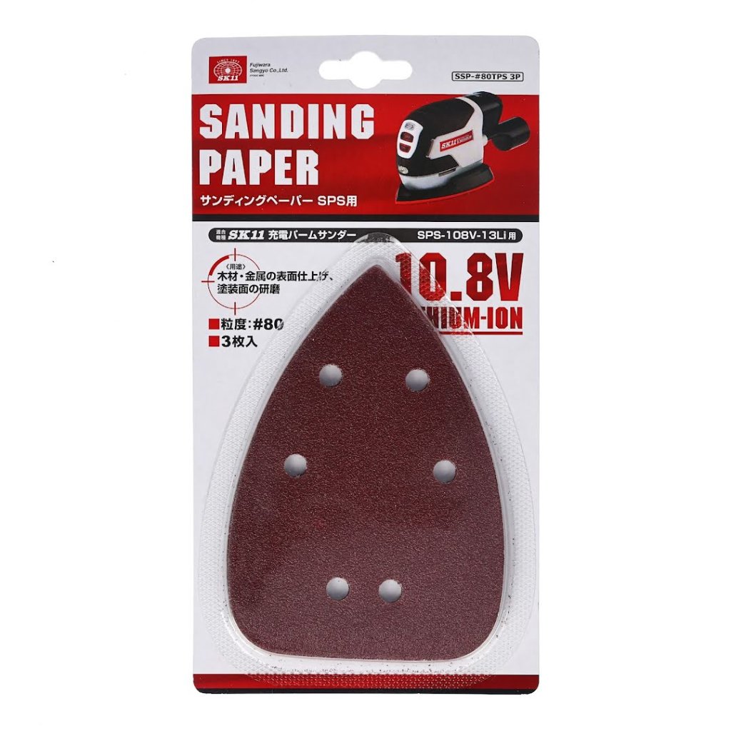 Brusný papír pro vibrační brusku SK11, model SSP-#80TPS 3P, je speciálně navržený pro akumulátorovou vibrační brusku. Tento brusný papír je ideální pro broušení dřevěných a kovových povrchů, včetně rohů. Jeho zrnitost 80 je perfektní pro hrubé broušení. Každé balení obsahuje tři listy.