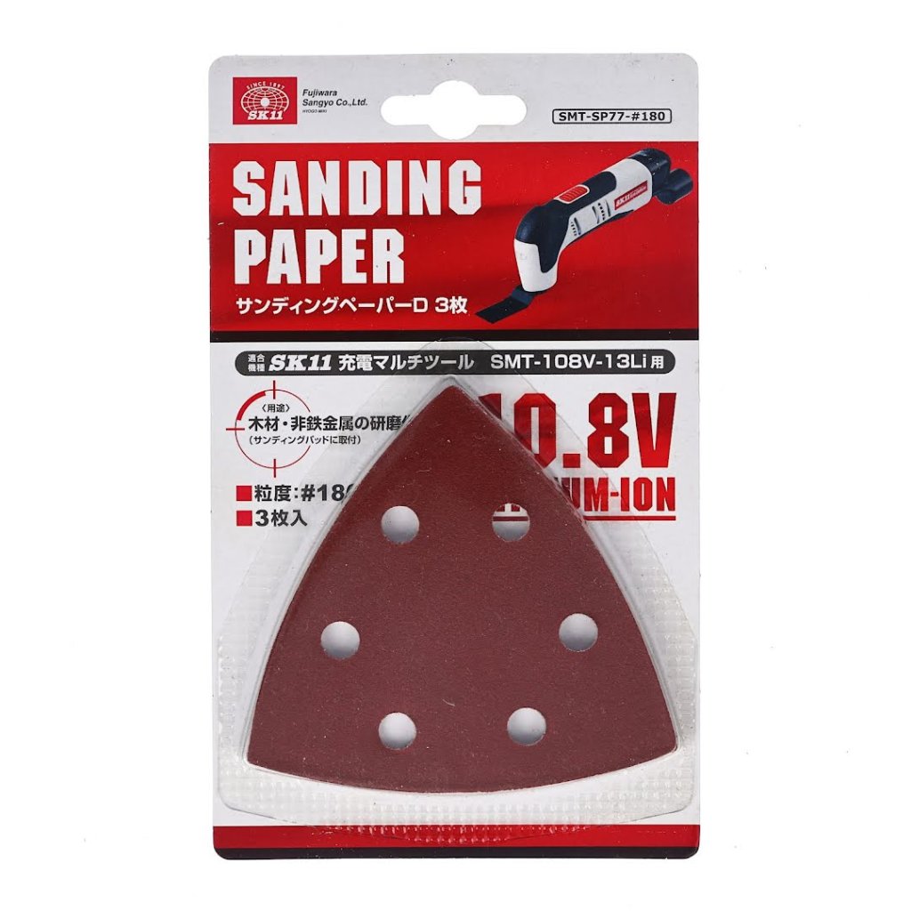 Brusný papír SK11, model SMT-SP77-#180, je navržen pro použití s vibračními a oscilačními bruskami. Tato sada obsahuje tři kusy brusného papíru se zrnitostí #180, ideální pro střední broušení dřevěných a kovových povrchů. Je také perfektní pro vyhlazování rohů a hran.