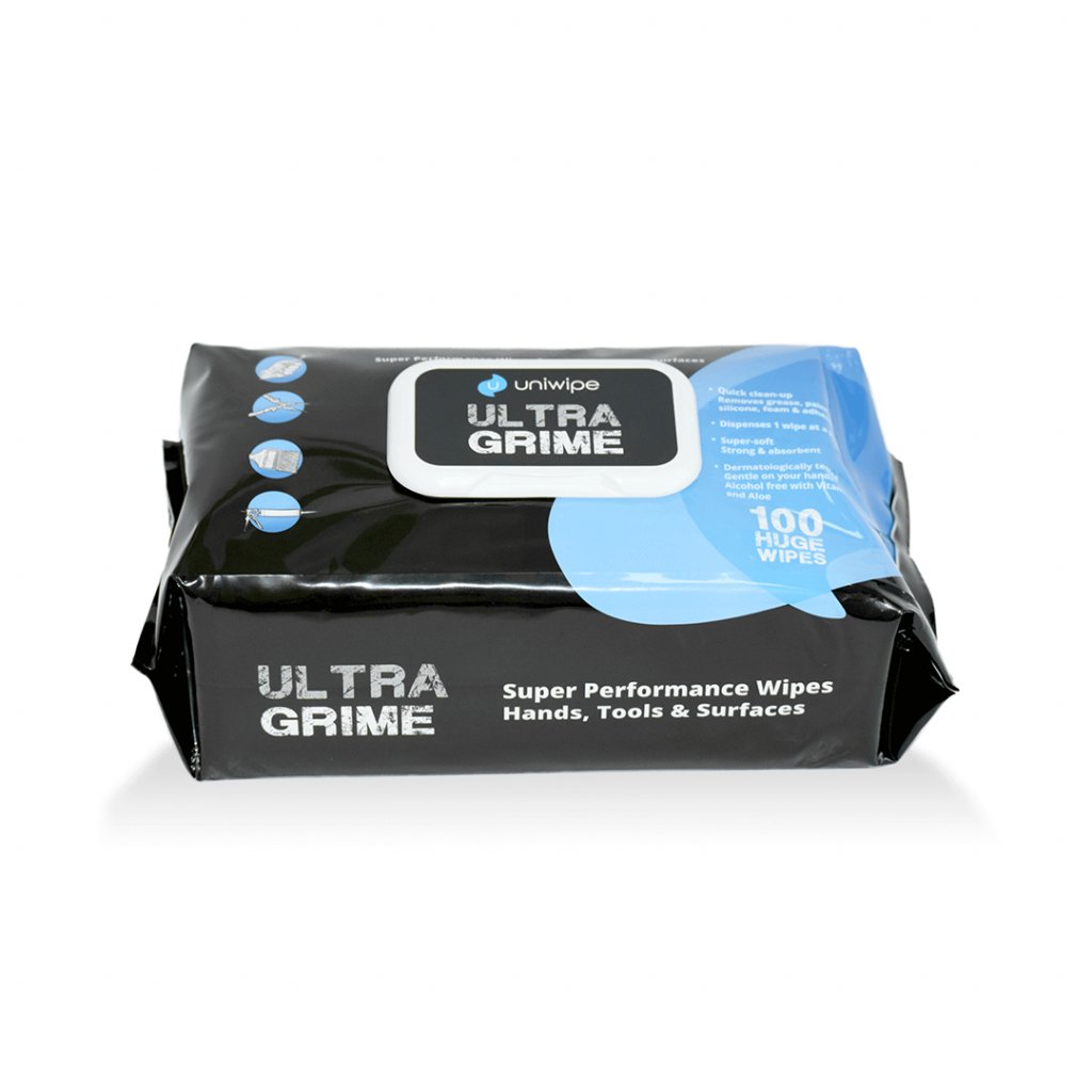 Extra velké, pevné a vlhčené ubrousky UNIWIPE ULTRAGRIME efektivně vyčistí odolné nečistoty, které vznikají při průmyslovém provozu, v různých dílnách, autoservisech nebo na stavbách. Těmito ubrousky můžete odstraňovat nečistoty z povrchů znečistěných předmětů, například z nástrojů, automobilů, textilií, čalounění, ale i z umaštěných a zalepených rukou. Ubrousky UNIWIPE ULTRAGRIME jsou velmi účinné a lehce odstraní olej, mastnotu, inkoust, lepidla, barvy, silikon, dehet, nevytvrzenou pěnu a další nečistoty.