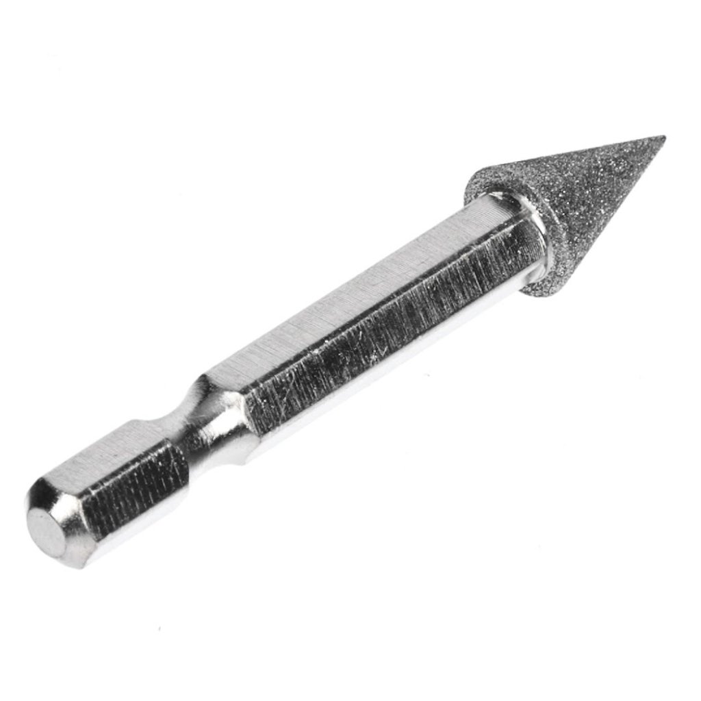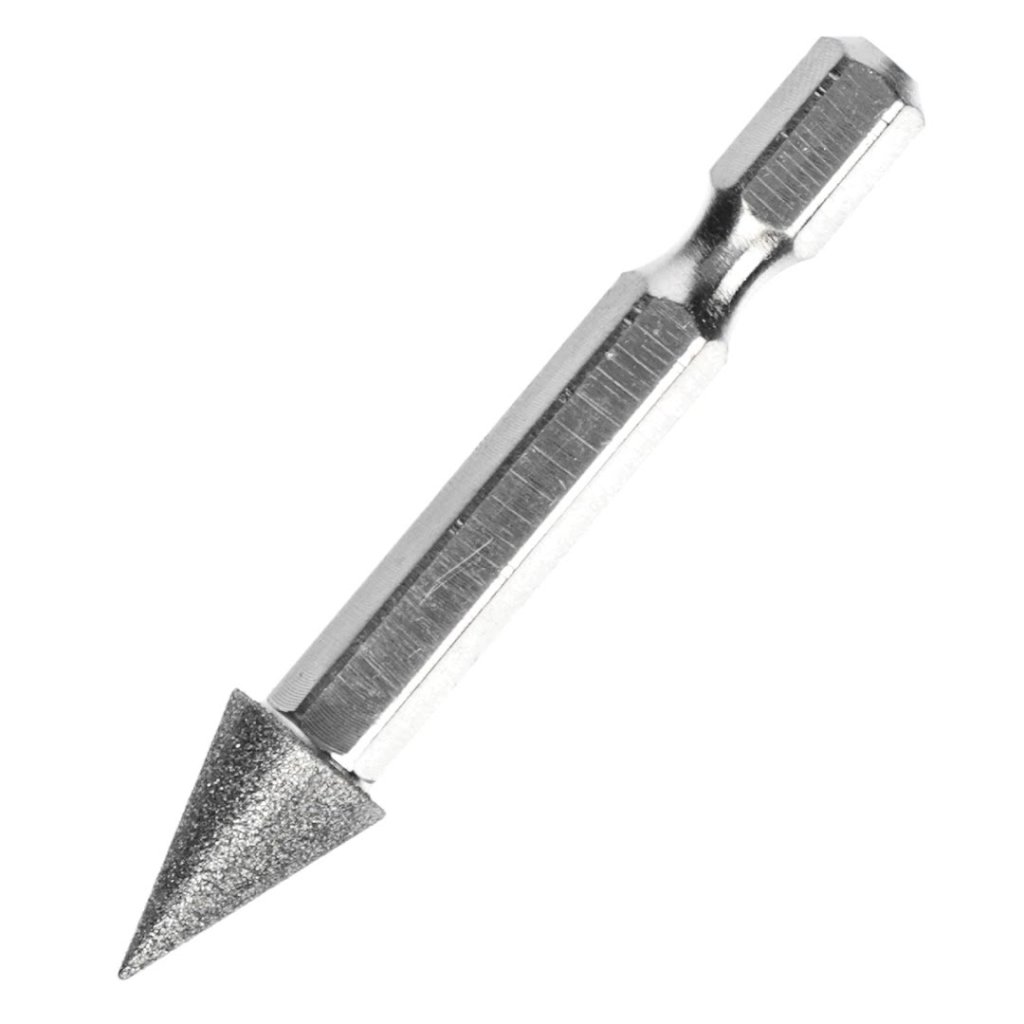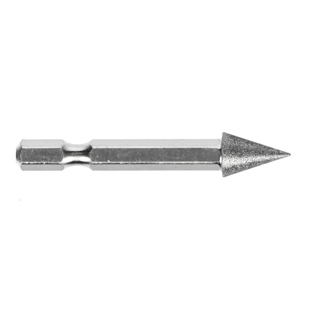 Diamantová rotační fréza SK11, DIA-4HEX, je navržena pro broušení a odstraňování otřepů z různých materiálů, včetně železa, nerezové oceli, karbidových čepelí, skla, kamene a keramiky. Díky 6,35 mm šestihranné stopce je kompatibilní s rázovými utahováky. Pilník má zrnitost #100 a špičatý kónický tvar o délce 15 mm a šířce 10 mm.