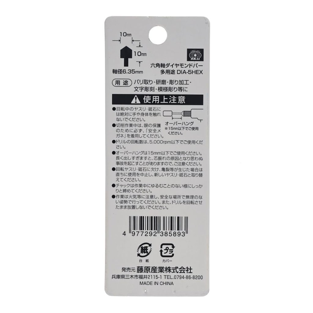 Fréza SK11, model DIA-5HEX, je ideální pro broušení a odstraňování otřepů z různých materiálů, včetně železa, nerezové oceli, karbidových čepelí, skla, kamene a keramiky. Tento univerzální nástroj disponuje šestihrannou stopkou 6,35 mm kompatibilní s rázovými utahováky, a má válcový špičatý tvar o rozměrech 10 mm x 10 mm. Pilník je pokrytý diamantovým povlakem se zrnitostí #100, což zajišťuje efektivní a přesnou práci.