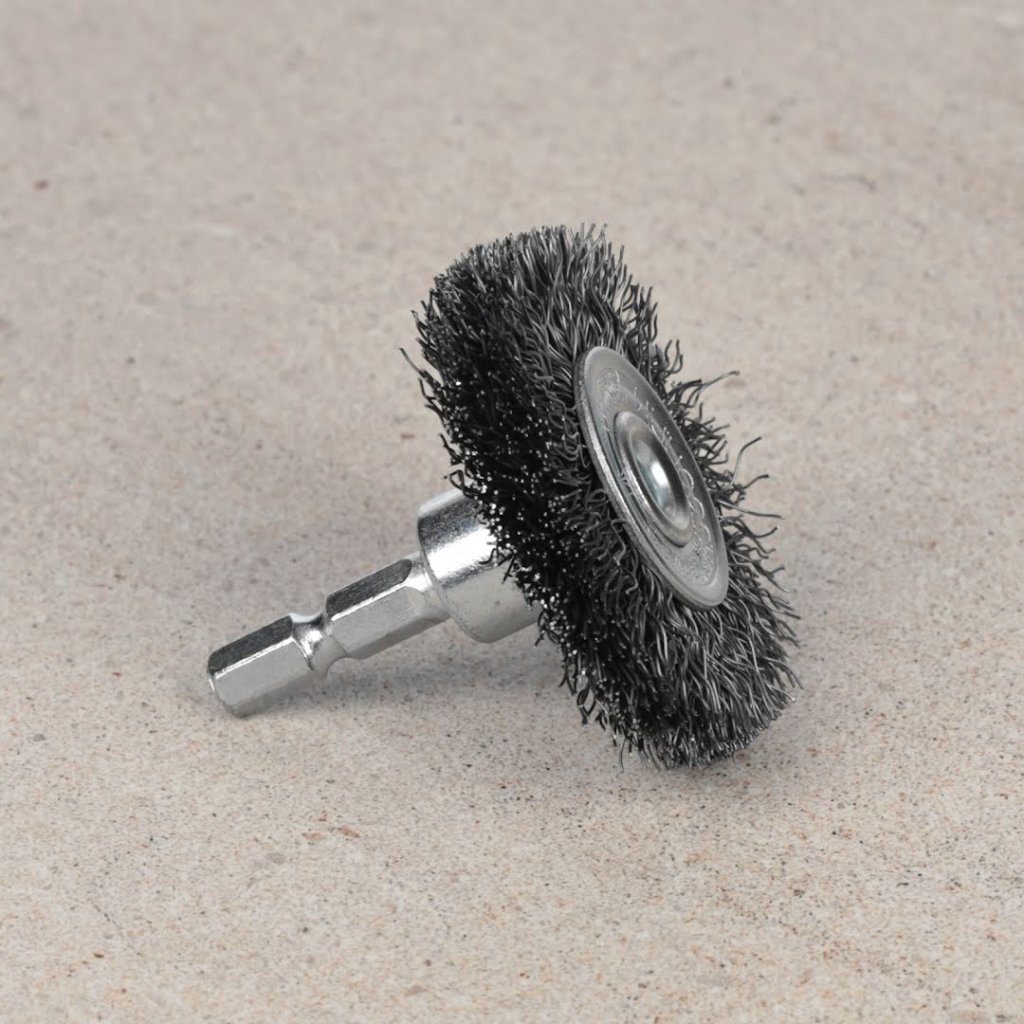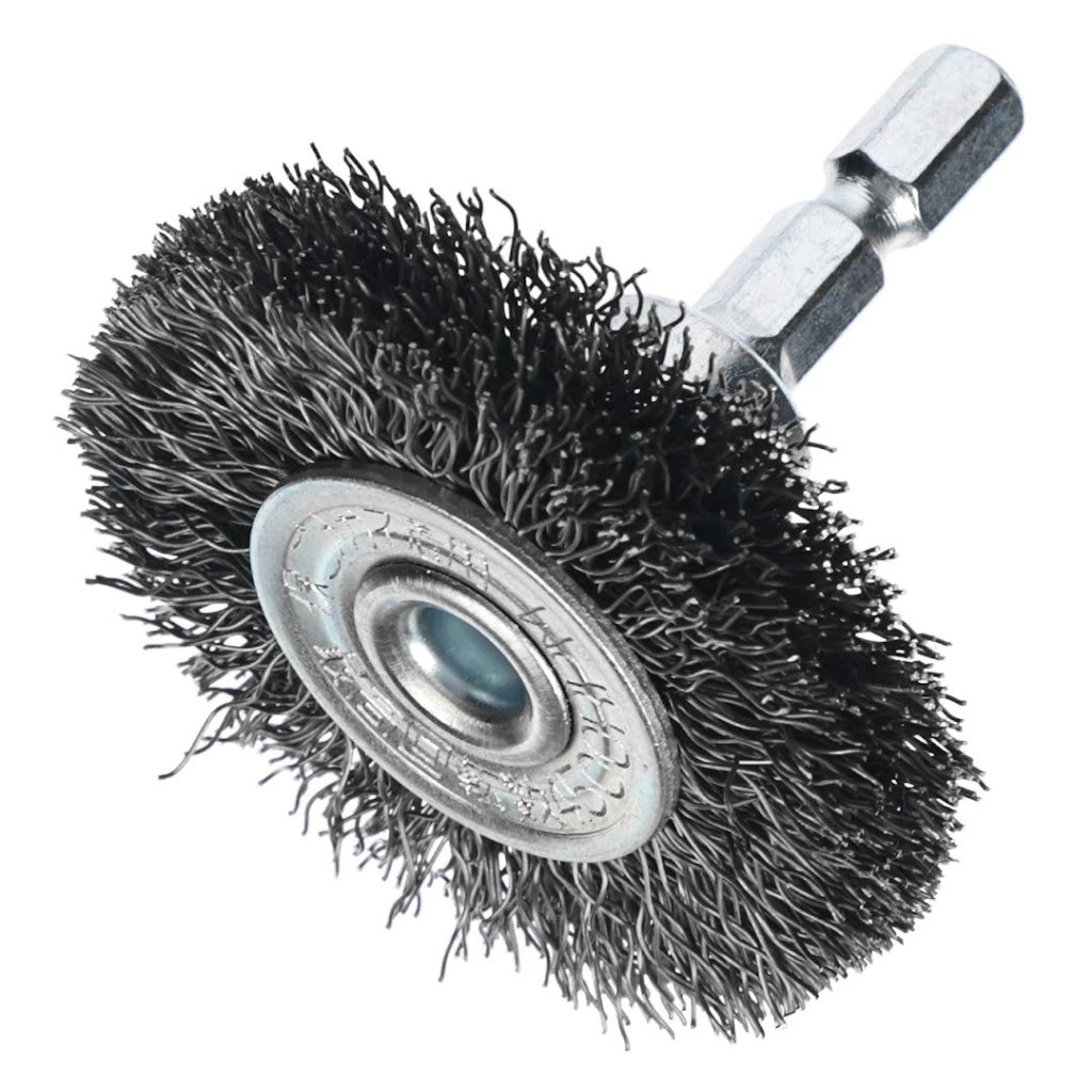 Drátěný kartáč SK11 je navržen pro odstraňování rzi, strhávání barvy a čištění otřepů na železe a lehkých kovech. Jeho 6,35 mm šestihranná stopka se snadno připojuje k aku šroubovákům a elektrickým vrtačkám pro univerzální použití. Také vyniká v čištění a leštění vnitřků trubek. Průměr kotouče je 50 mm a váží pouze 70g.