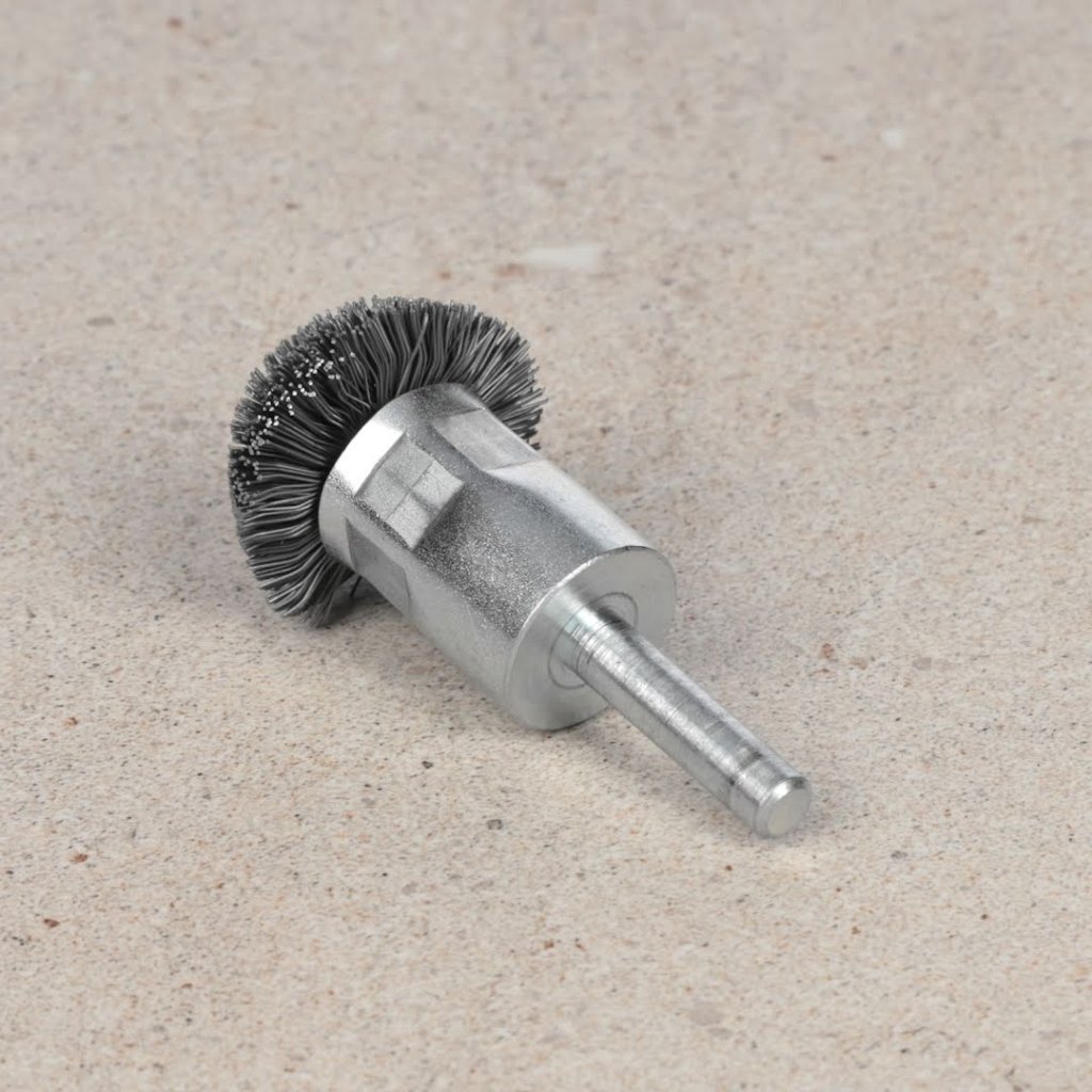 Tento kartáč SK11 je navržen pro odstraňování rzi, barvy a otřepů na železe, lehkých kovech a dřevěných površích. Jeho jedinečný tvar usnadňuje použití na zakřivených površích. Kartáč disponuje válcovou stopkou o průměru 6 mm a je kompatibilní s většinou elektrických vrtaček.