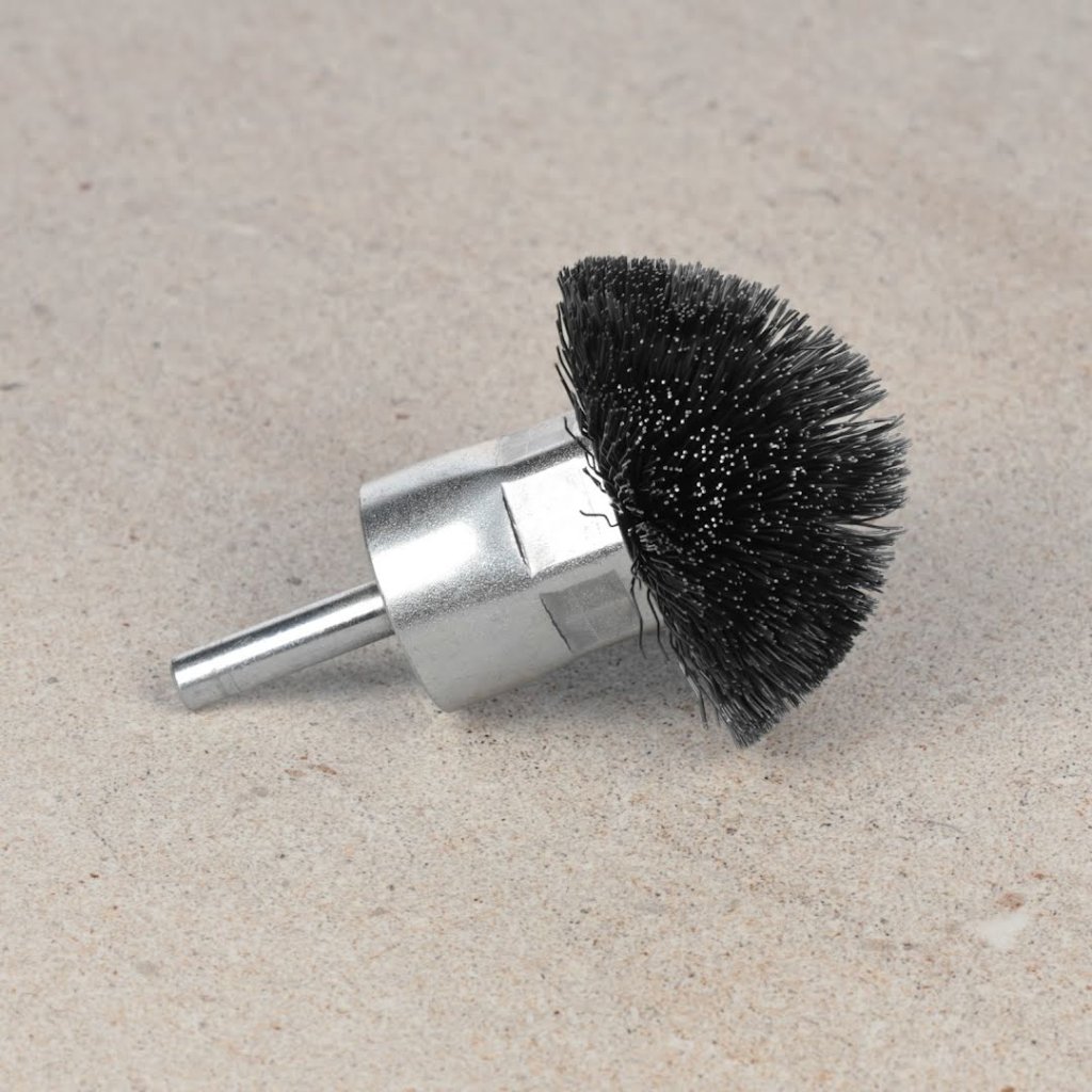 Tento kartáč SK11 je navržen pro odstraňování rzi, barvy a otřepů na železe, lehkých kovech a dřevěných površích. Jeho jedinečný tvar usnadňuje použití na zakřivených površích. Kartáč disponuje válcovou stopkou o průměru 6 mm a je kompatibilní s většinou elektrických vrtaček.