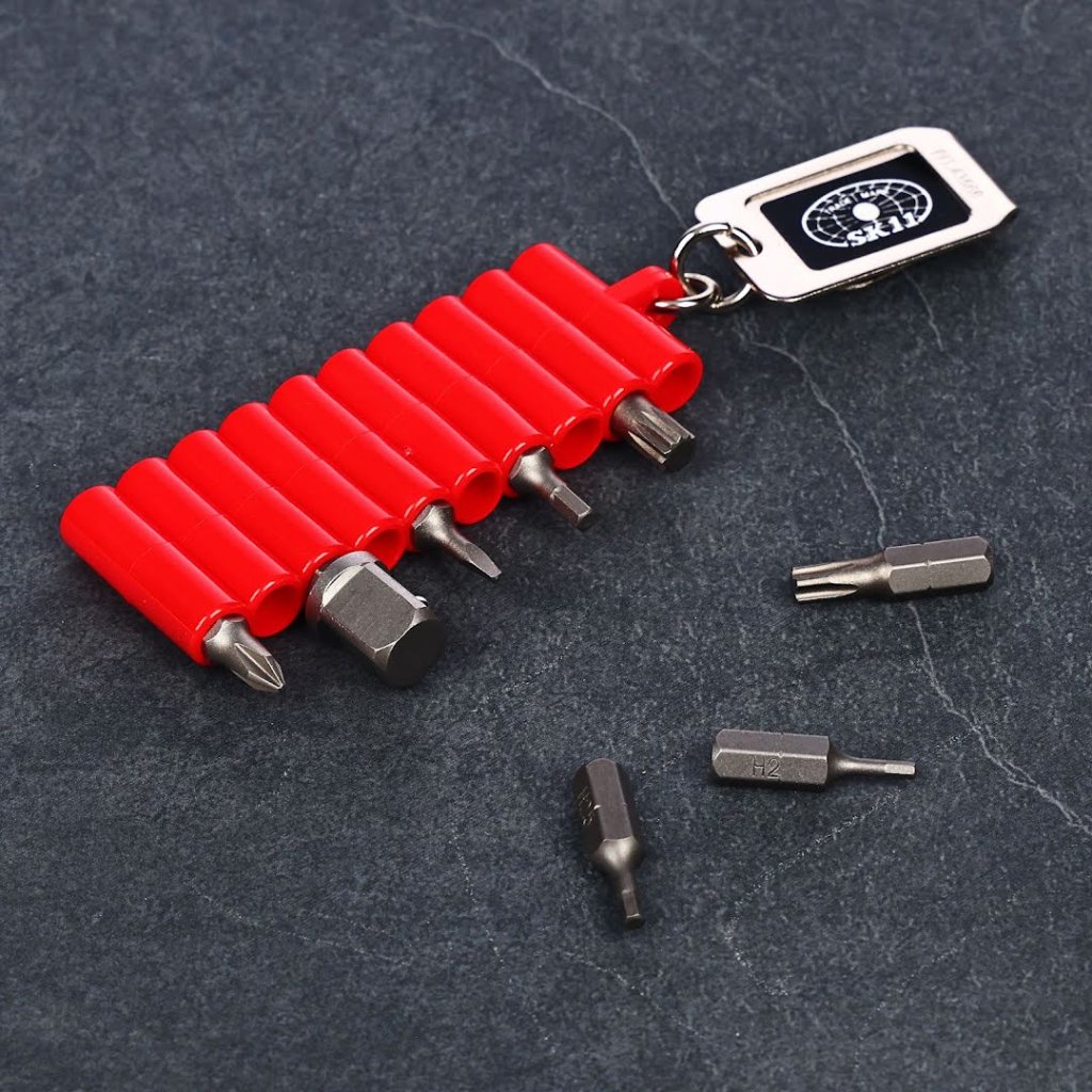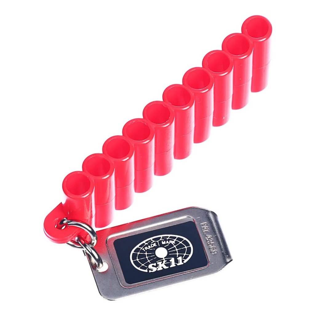 SK11 držák bitů, model BH-1, je navržen pro ukládání a přepravu bitů . S kompaktními rozměry 28 mm šířka, 140 mm výška a 10 mm hloubka, váží pouhých 22g, což z něj činí snadno přenosný. Tento držák pojme až 10 bitů. Držák je živé červené barvy, což usnadňuje jeho nalezení ve vaší nástrojové sadě nebo na pracovišti.