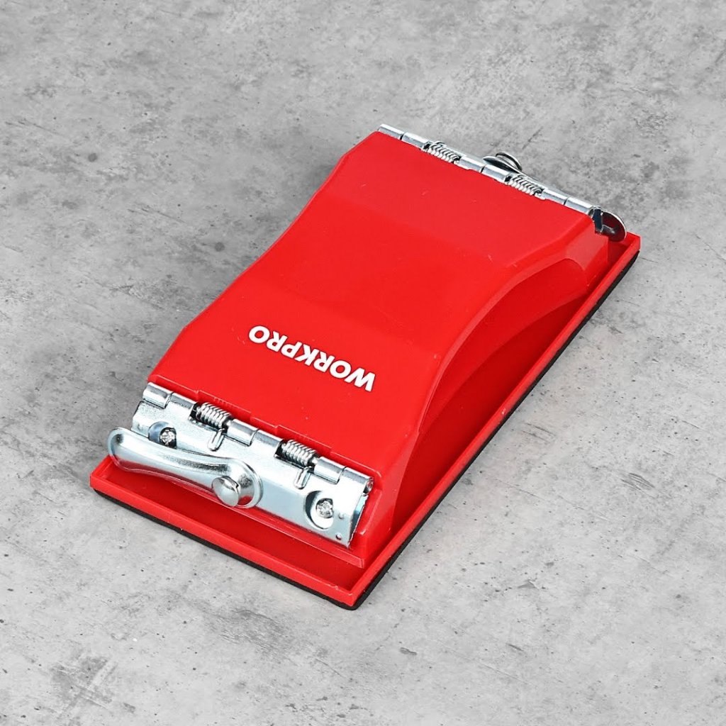 Brusný blok WORKPRO slouží ke snadnému a efektivnímu broušení pomocí brusných papírů. Brusný papír se snadno instaluje do bloku pomocí bočních úchytů. Ergonomická rukojeť přizpůsobena dlani.