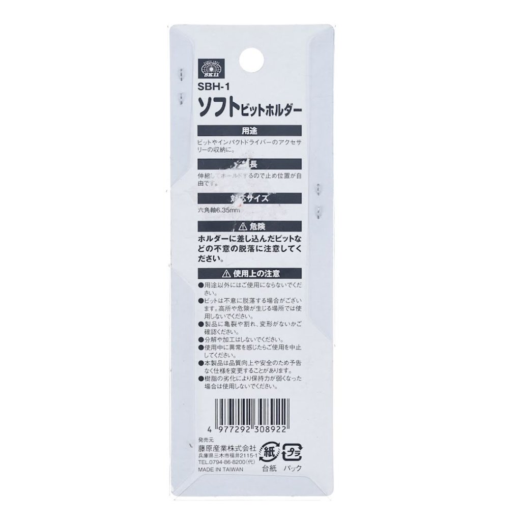 Držák SK11, model SBH-1, je ideální pro organizaci a uložení až 10 bitů. Je kompaktní a lehký, měří 30 mm šířka x 140 mm výška x 10 mm hloubka a váží pouze 17 g. Držák umožňuje flexibilní zajišťovací polohy a je vybaven praktickou karabinou pro snadné připevnění. Podporuje šestihranné stopky 6,35 mm, což poskytuje všestrannost pro různé bity.
