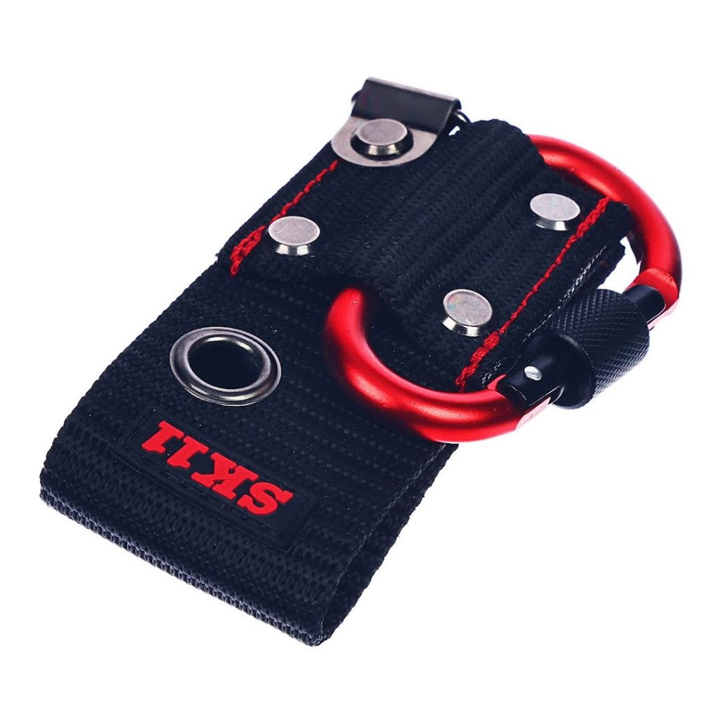 SK11 držák nástrojů, model STH2-2, je univerzální držák nástrojů navržený pro snadné připevnění a odstranění nářadí. Díky odnímatelnému systému poutka na pás tento držák umožňuje rychlý a pohodlný přístup k nástrojům. Držák měří přibližně 50 mm na šířku, 120 mm na výšku a 50 mm do hloubky a váží asi 60 g. Je kompatibilní s pásy až do šířky 60 mm, což z něj činí praktický doplněk.