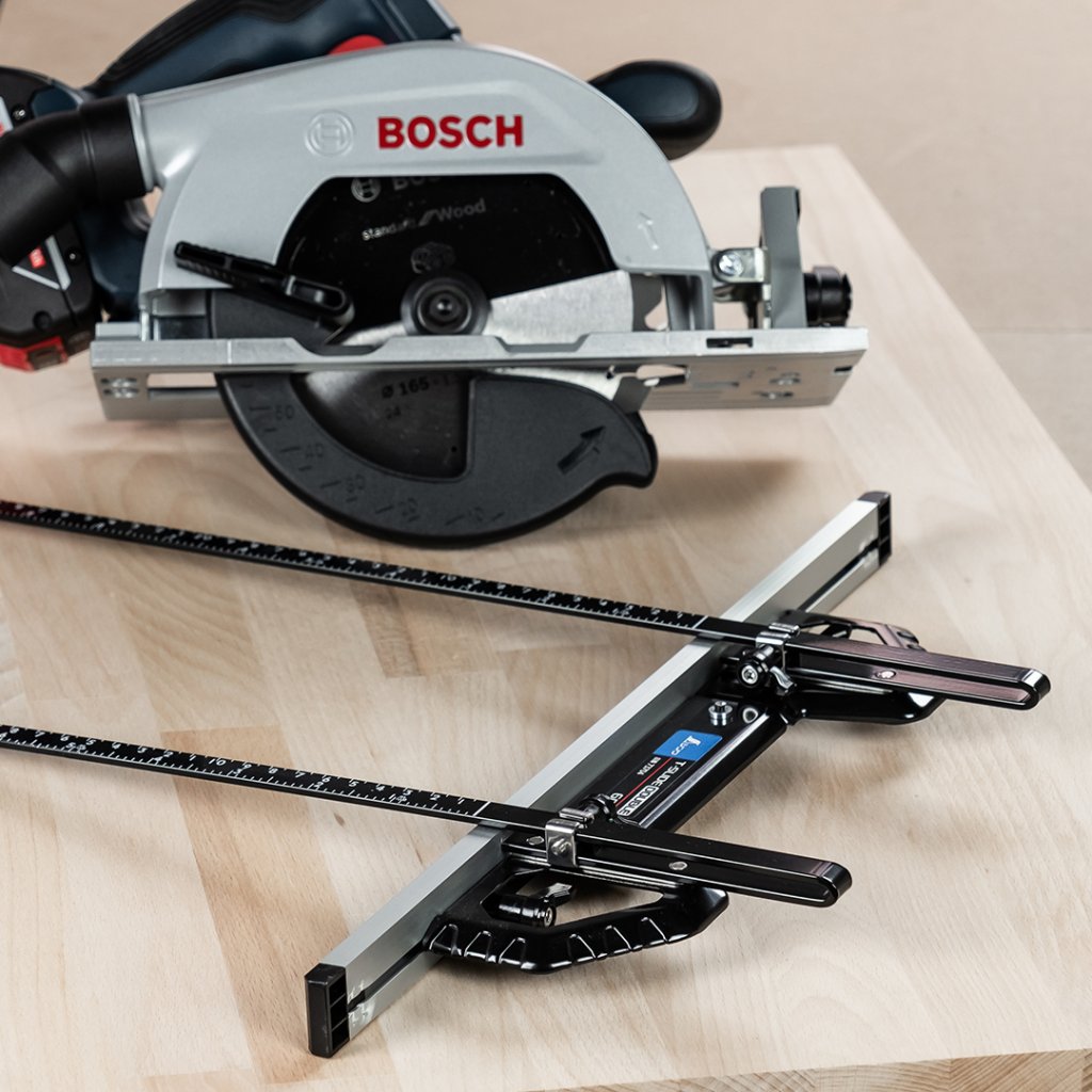 Praktické vodítko SHINWA T-Slide pro přesné řezání okružní pilou. S tímto přítlačným kovovým vodítkem uděláte přesný pravoúhlý řez maflíkem nebo přímočarou pilou zcela jednoduše. Ocelová hrana vodící lišty zaručí vysokou pevnost a odolnost proti opotřebení. Aretace hrany vodítka šroubem s plastovou rukojetí.