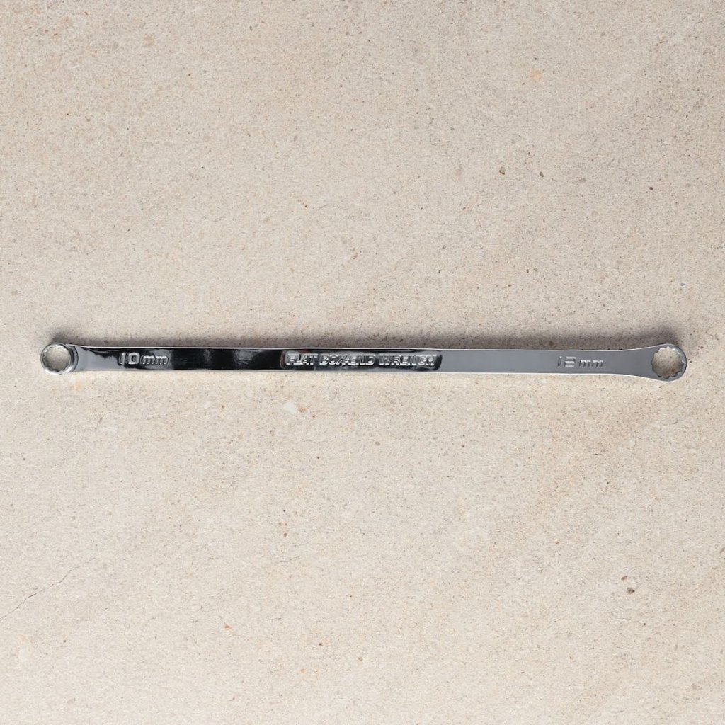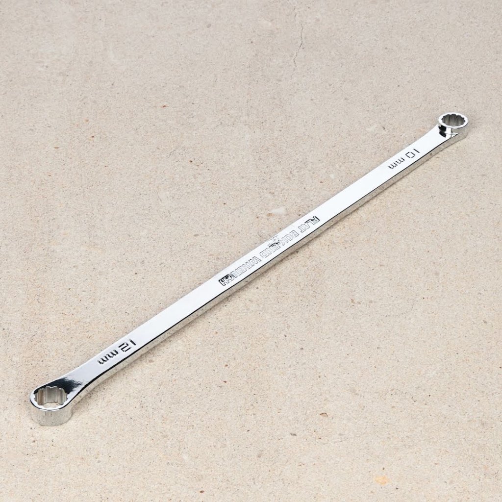 Extra dlouhý očkový klíč SK11, je všestranný nástroj pro utahování a povolování šestihranných šroubů a matic, zejména v těžko přístupných místech. Díky své dlouhé délce 280 mm nabízí tento klíč zvýšenou páku, což ho činí ideálním pro aplikace s vysokým točivým momentem. Jeho odsazený design umožňuje použití i tehdy, když je matice nebo šroub obklopen zápustnou dírou. Jeho zrcadlově leštěný hladký povrch zaručuje jak odolnost, tak elegantní vzhled. Vyrobeno z chromovaných materiálů.