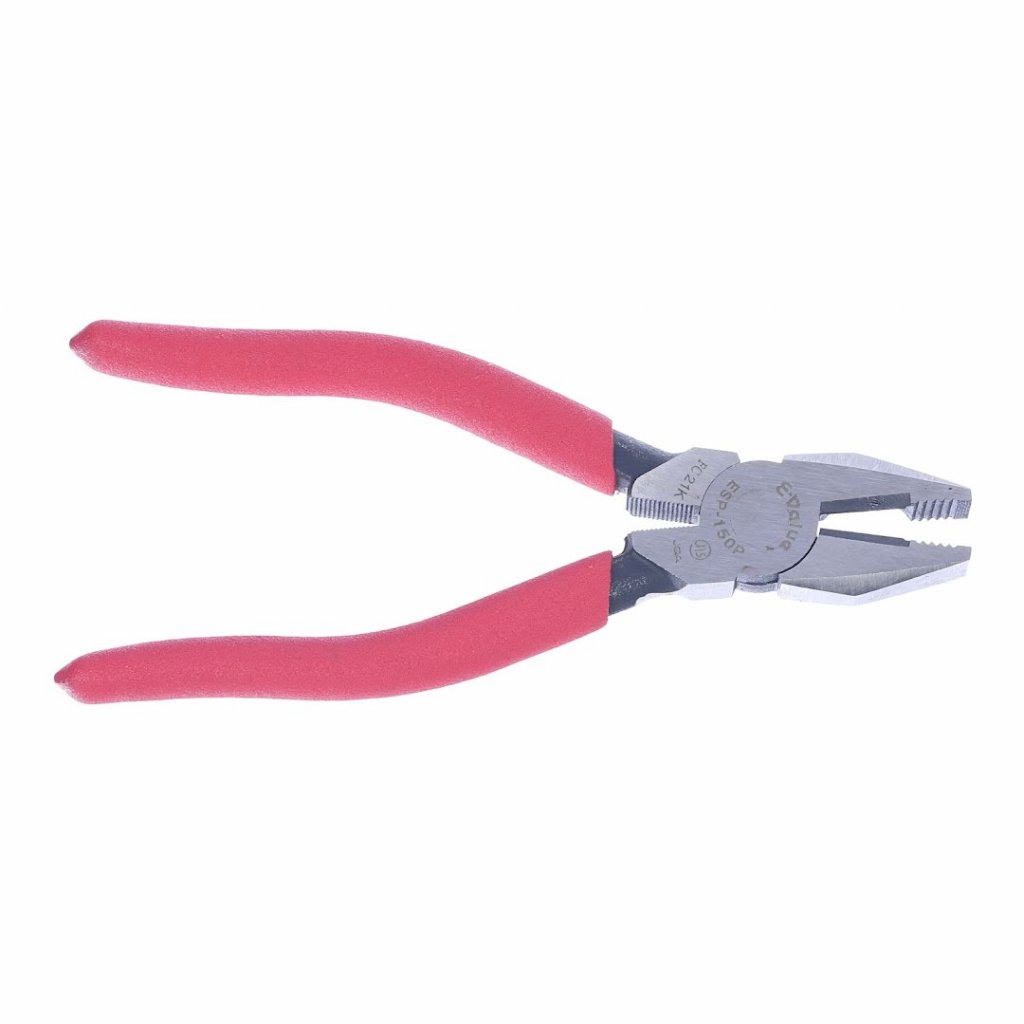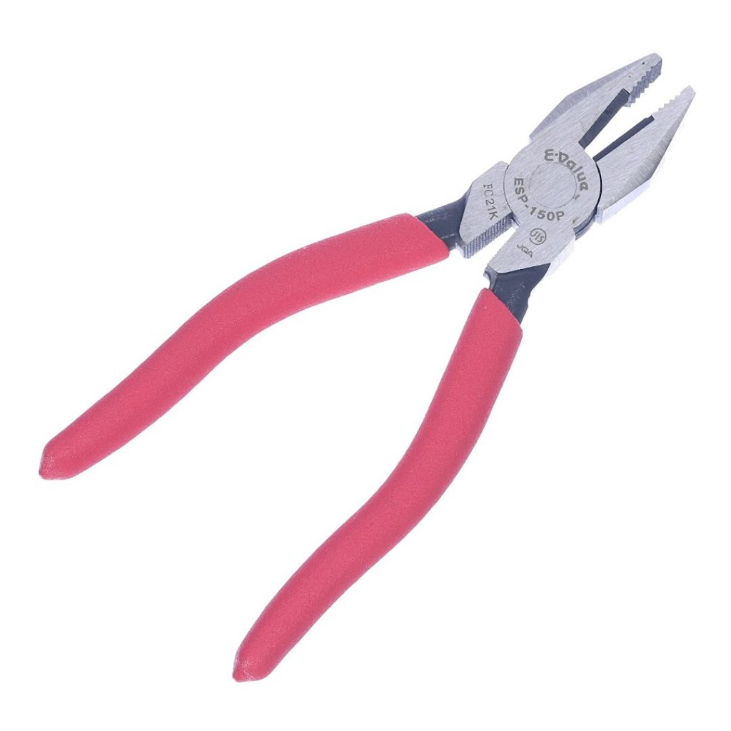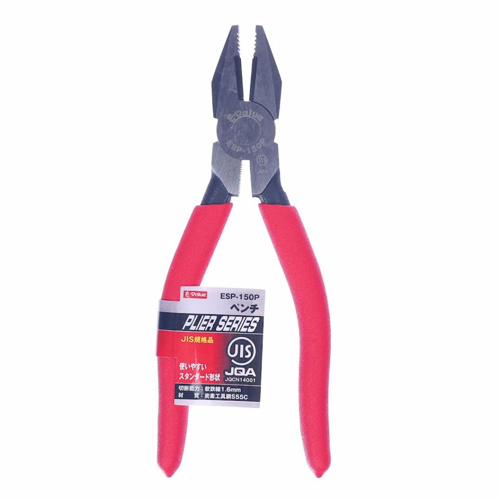 Kombinované kleště E-VALUE, model ESP-150P, jsou navrženy s standardním tvarem pro snadné použití. Tento nástroj podle standardu JIS je všestranný a schopný uchopování, kroucení a štípání jedním nástrojem. S rozměry 50 x 165 x 12 mm a hmotností 210 g jsou kompaktní a lehké. Jejich řezná kapacita pro měkký železný drát je až 1,6 mm.