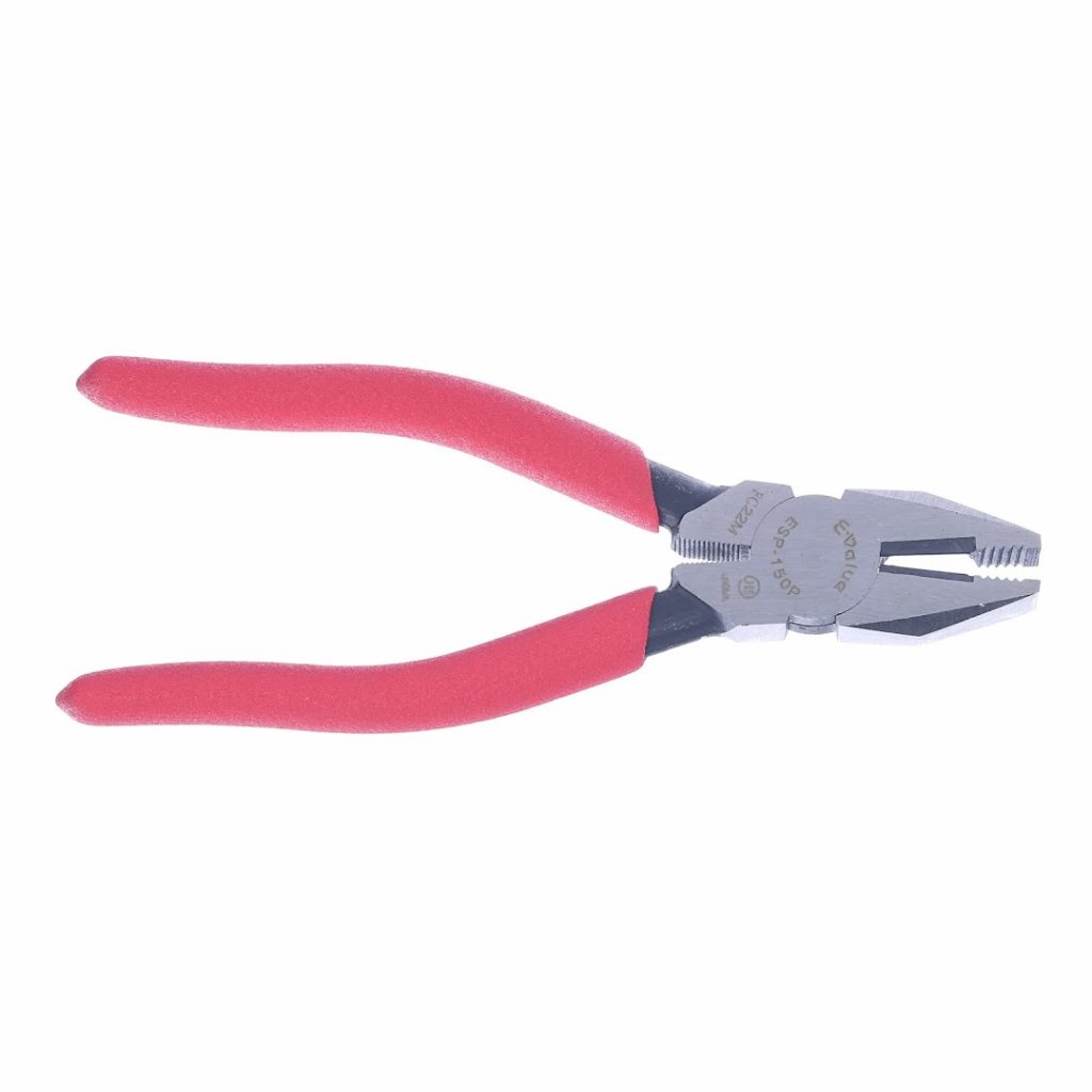 Univerzální kleště E-VALUE pro uchopování a stříhání. Kleště jsou lehké s měkkými rukojeťmi vhodné ke stříhání měkkého železného drátu do 1,2 mm.