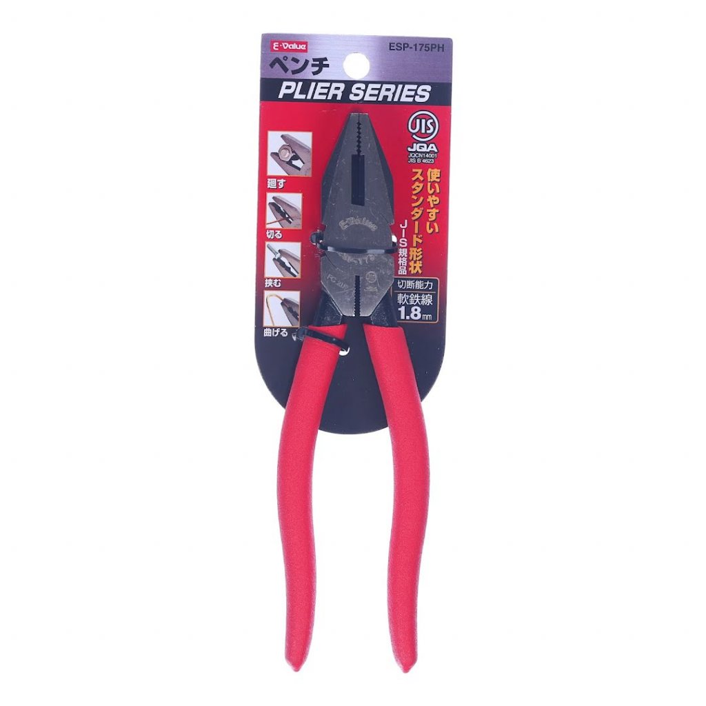 Kombinované kleště E-VALUE, model ESP-175PH, jsou všestranný nástroj navržený pro přesnost a odolnost. S rozměry 50 mm na šířku, 19 mm na výšku a 187 mm na hloubku a váhou 290 g jsou tyto kleště ideální pro řezání měkkého ocelového drátu. Jejich standardní design zajišťuje snadné použití při kroucení, řezání, uchopení a ohýbání. Vyrobeno dle JIS standardů, uživatelé se mohou spolehnout na jejich kvalitu a spolehlivost. Kleště mají řeznou kapacitu pro měkký železný drát až do 1,8 mm a disponují tvrdostí břitu HRC 58-62, což z nich činí nezbytný nástroj ve vaší sadě nářadí.