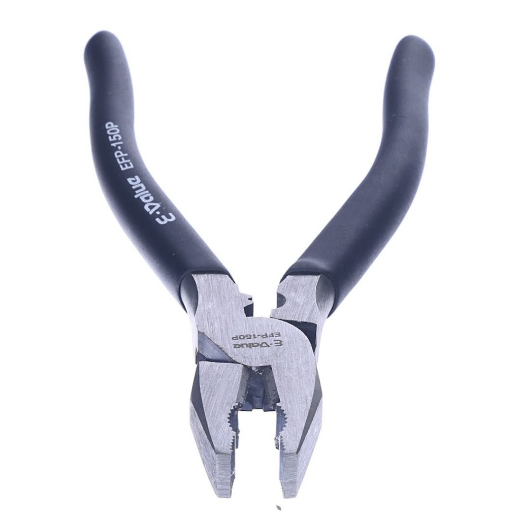 Kompaktní kleště od značky E-VALUE pro domácí práce s měkkou rukojetí, lehkou konstrukcí a schopností stříhat měkký železný drát do 0,8 mm.