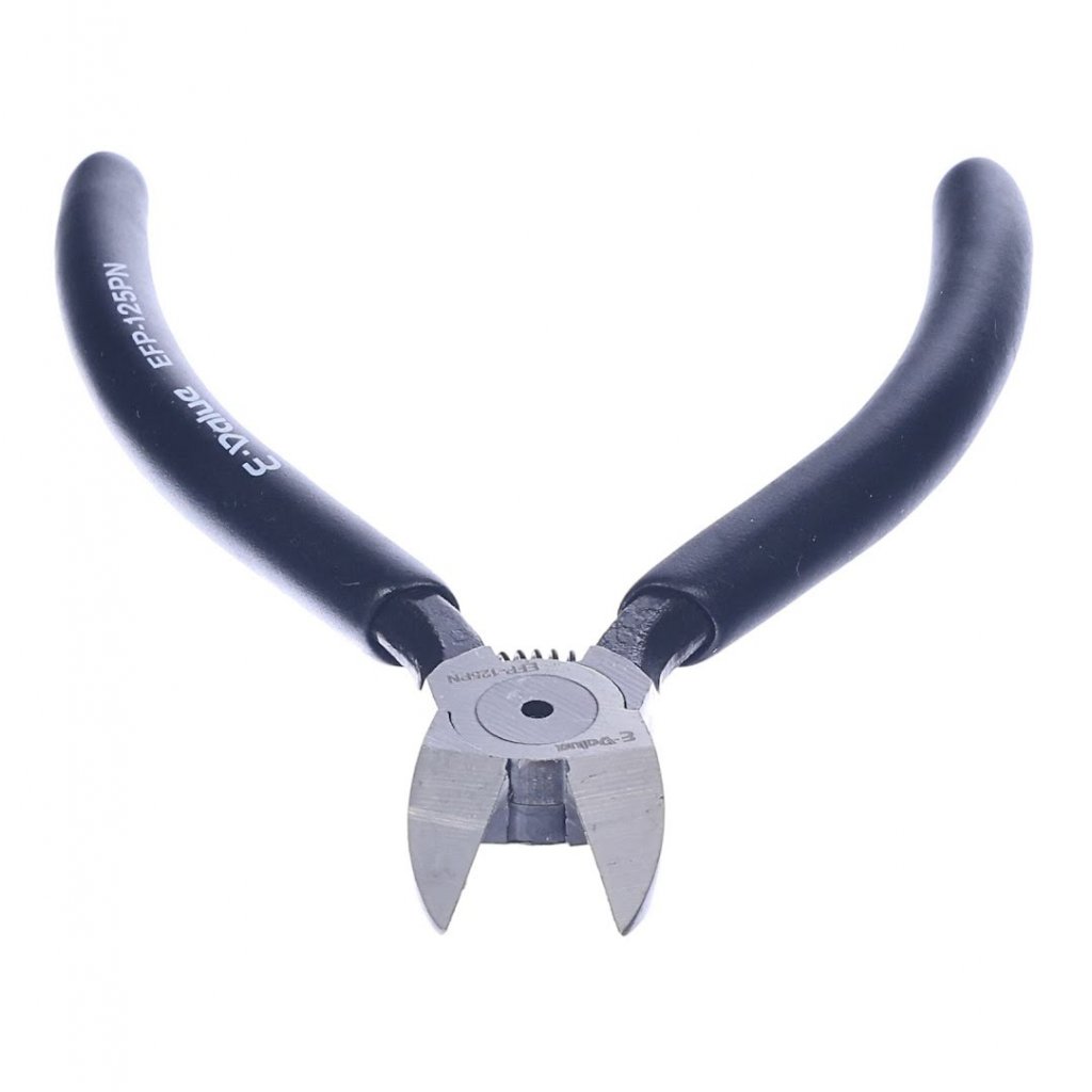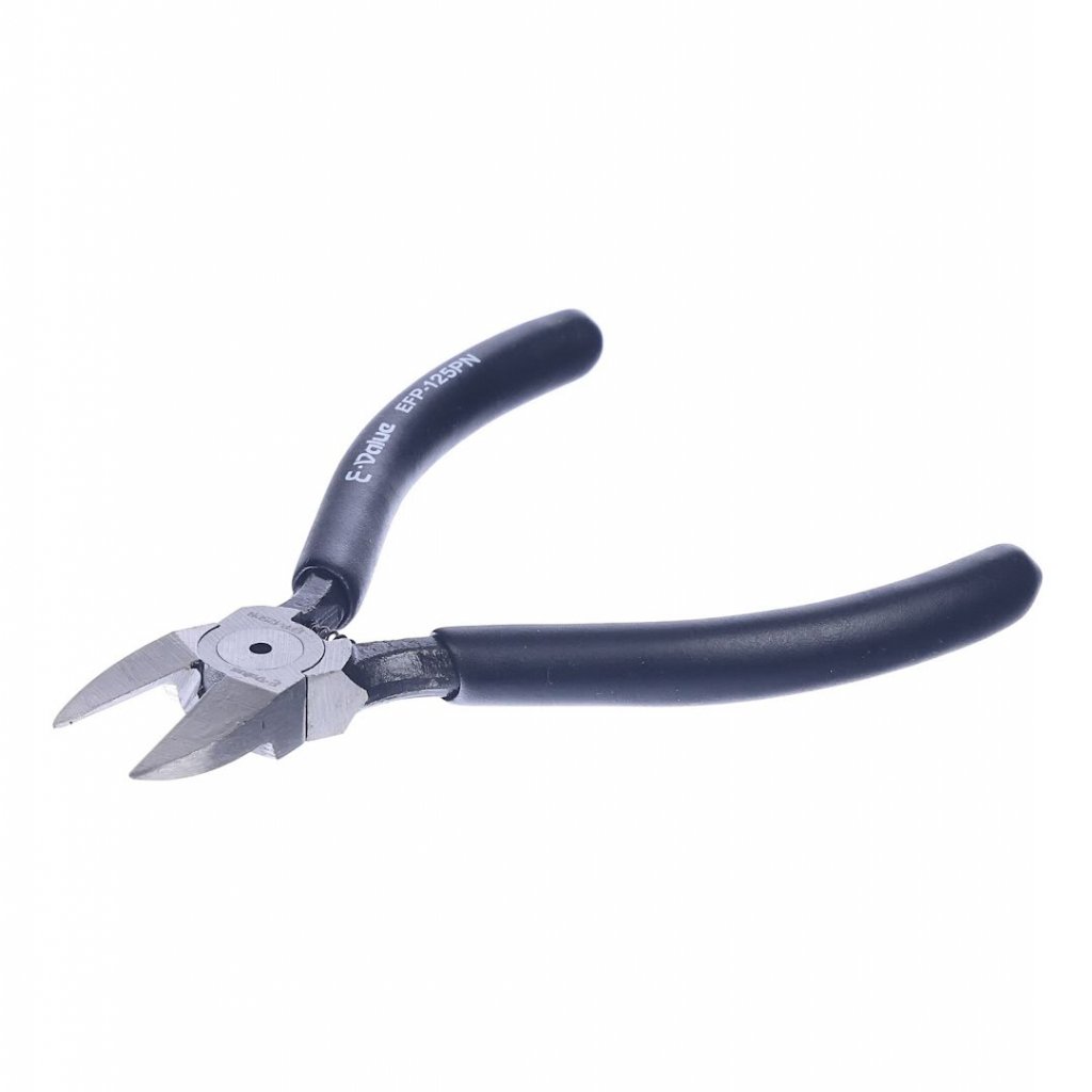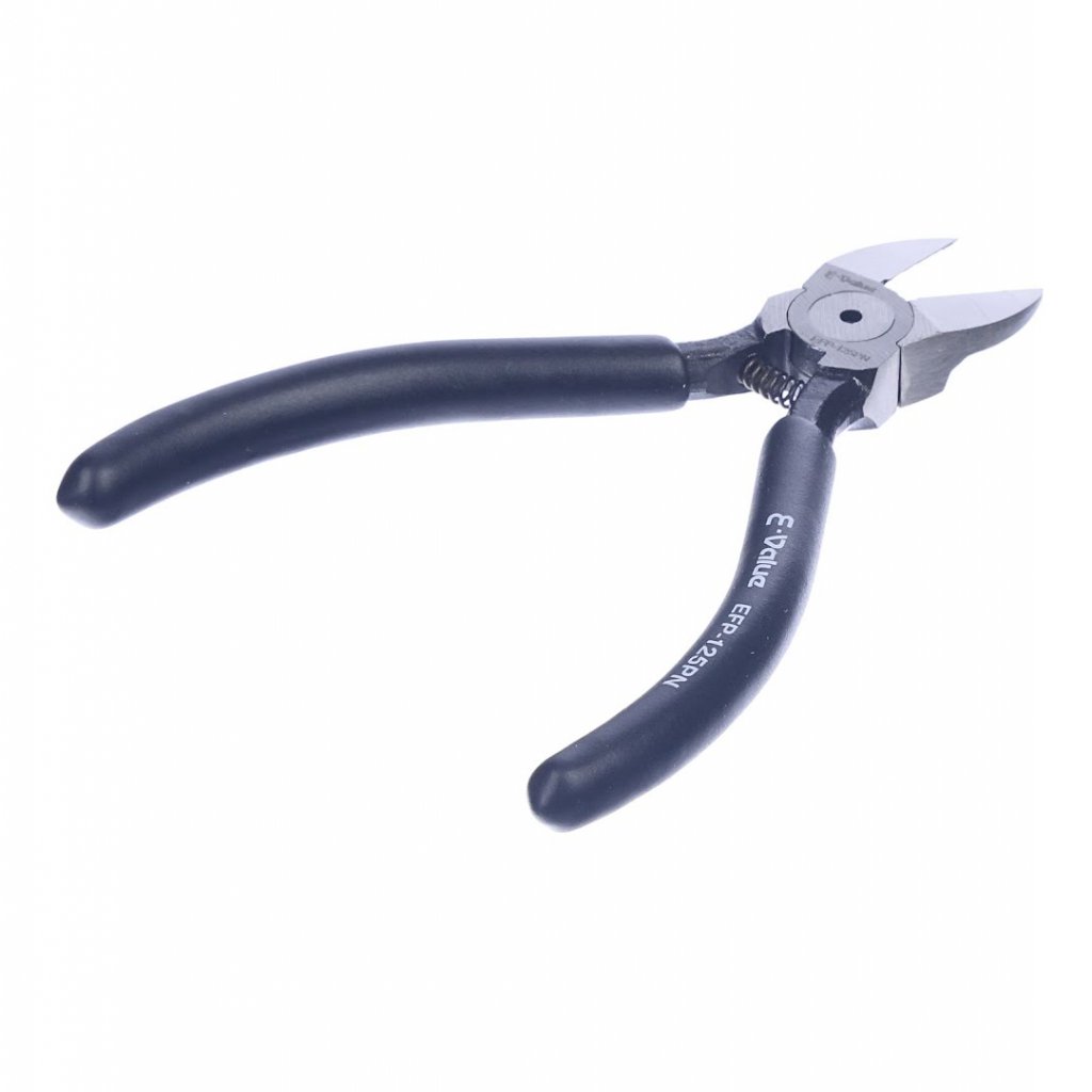 E-VALUE štípací kleště na plast, model EFP-125PN, jsou navrženy pro přesnost a snadnost použití. Jejich ostrá řezná hrana je ideální pro modelářství a prořezávání plastových materiálů. Díky kompaktním rozměrům 52 mm šířky, 10 mm výšky a 130 mm hloubky, a lehkému profilu o hmotnosti pouhých 100 g, jsou tyto kleště ideálním nástrojem pro detailní práci. Tyto kleště mají pružinový mechanismus pro snadnou manipulaci a mohou prořezávat pryskyřičné materiály až do průměru 2,0 mm.