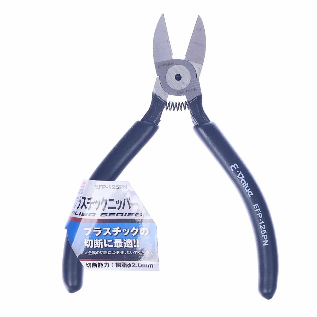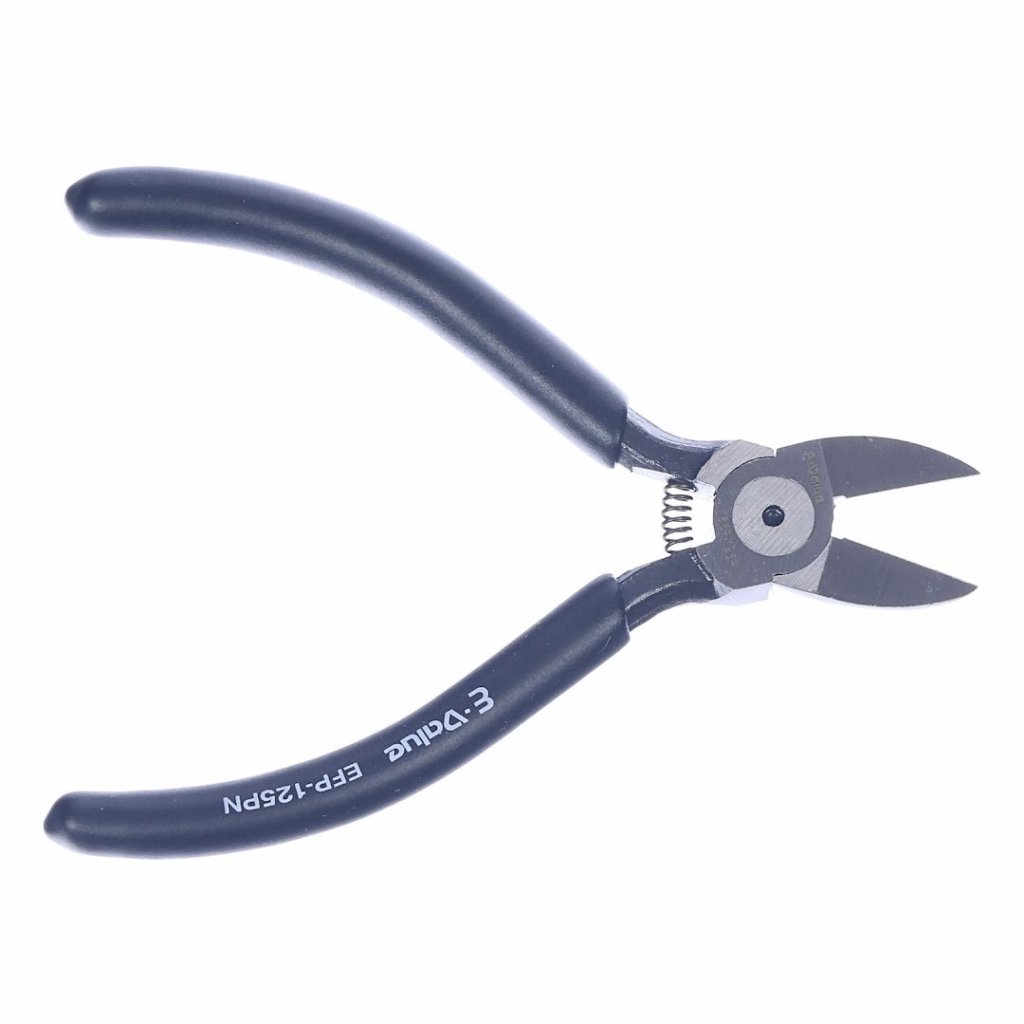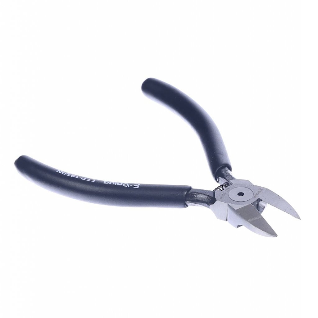 E-VALUE štípací kleště na plast, model EFP-125PN, jsou navrženy pro přesnost a snadnost použití. Jejich ostrá řezná hrana je ideální pro modelářství a prořezávání plastových materiálů. Díky kompaktním rozměrům 52 mm šířky, 10 mm výšky a 130 mm hloubky, a lehkému profilu o hmotnosti pouhých 100 g, jsou tyto kleště ideálním nástrojem pro detailní práci. Tyto kleště mají pružinový mechanismus pro snadnou manipulaci a mohou prořezávat pryskyřičné materiály až do průměru 2,0 mm.