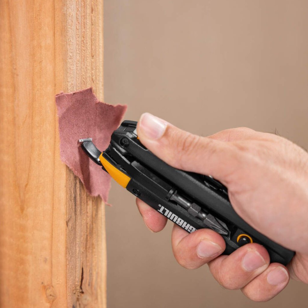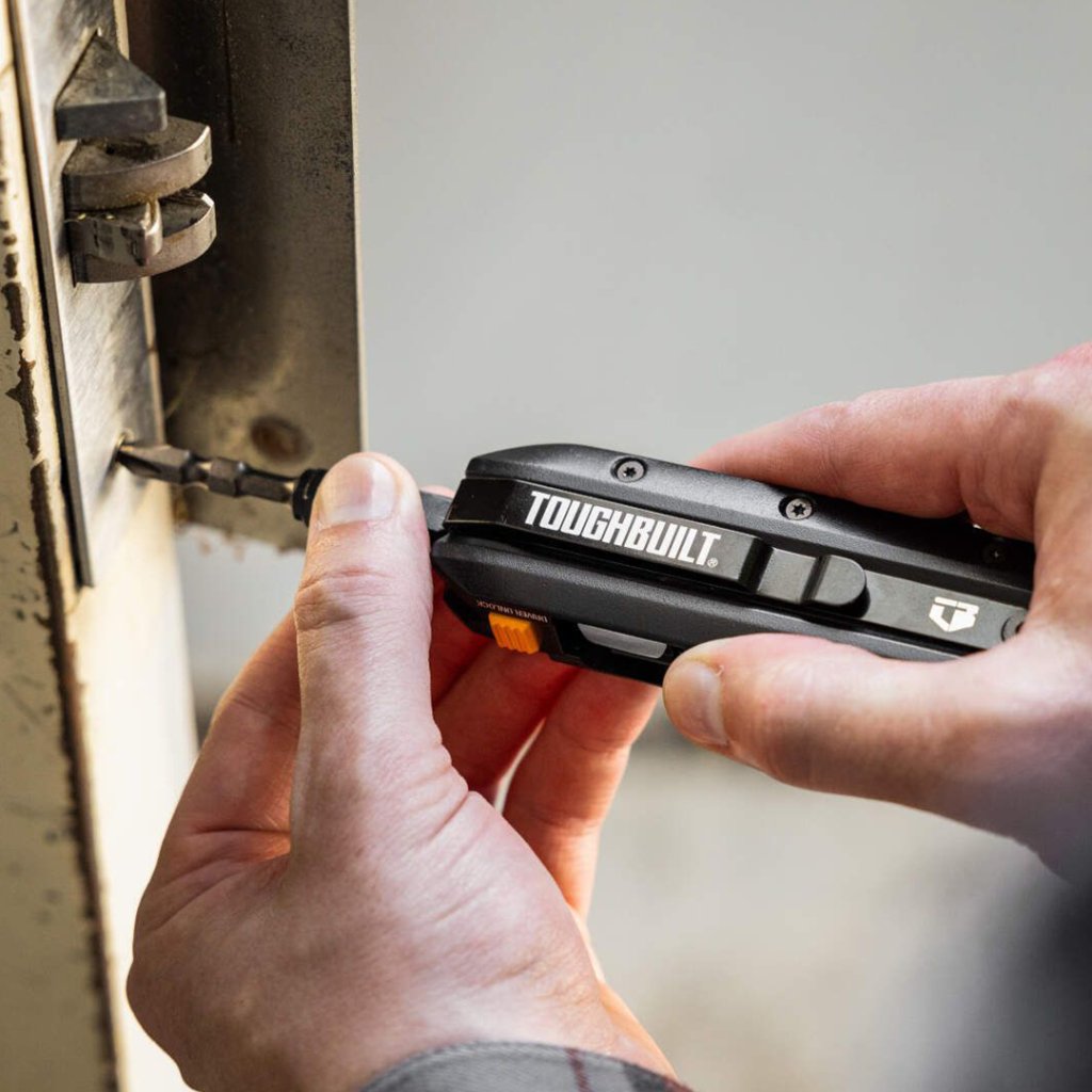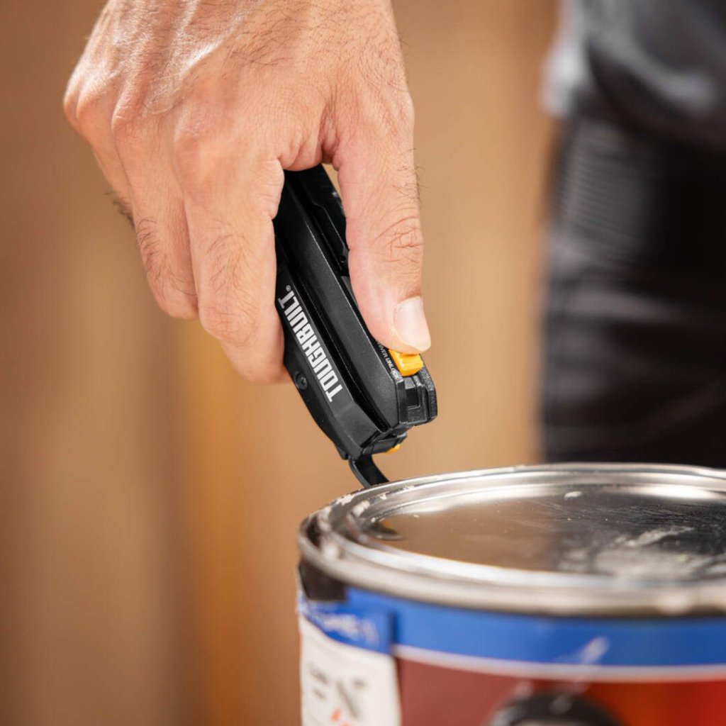 Multifunkční nůž TOUGHBUILT® 5-in-1 Electrician's Folding Knife, který je ideálním doplňkem výbavy vaší řemeslnické brašny. Co na tomto noži oceníte je praktický výklopný šroubovák s bitem profilu PH2/SL6 - tedy křížový a plochý šroubovák. Dále páčidlo na otevírání plechovek s barvou, loupačkou na kabely integrovaného v zavírací hlavici nože. A to hlavní - nůž s vyměnitelnými čepelemi uloženými v zásobníku rukojeti.