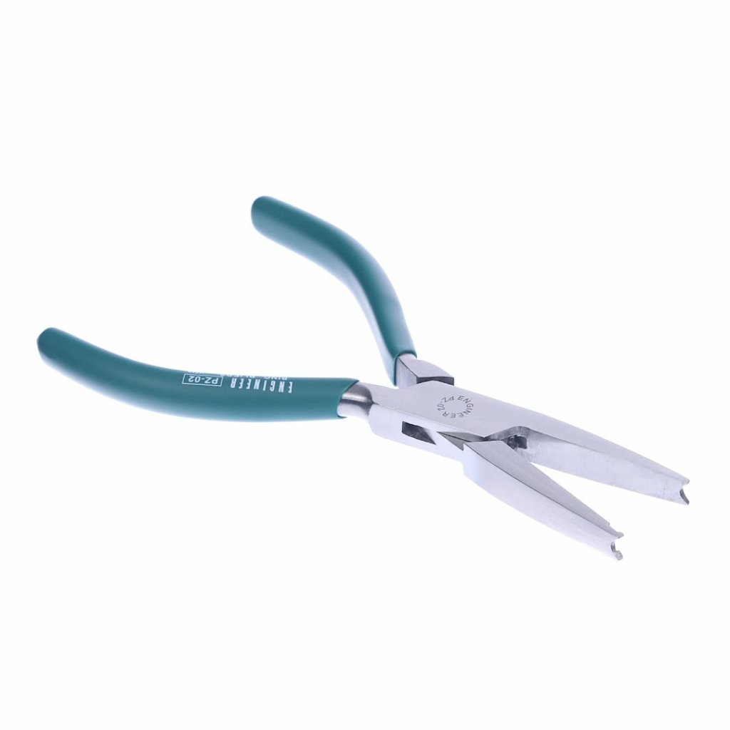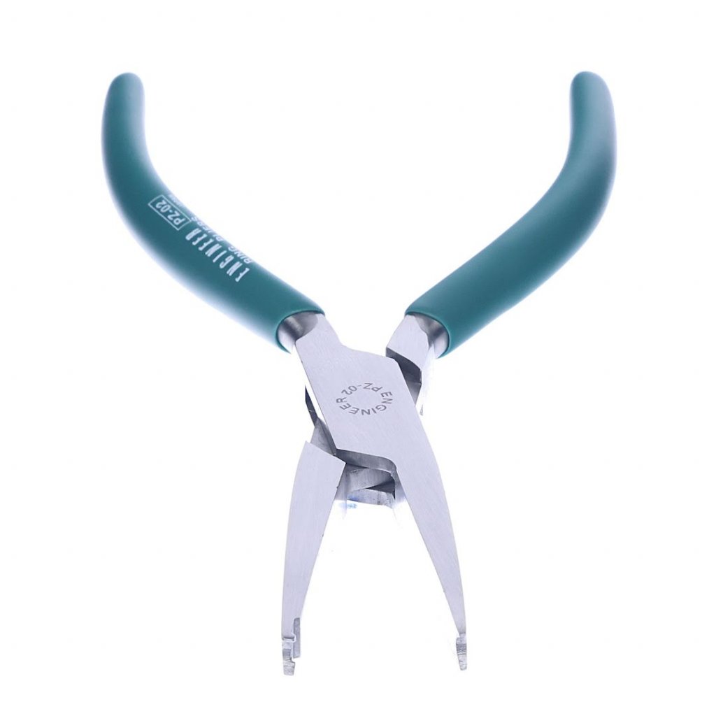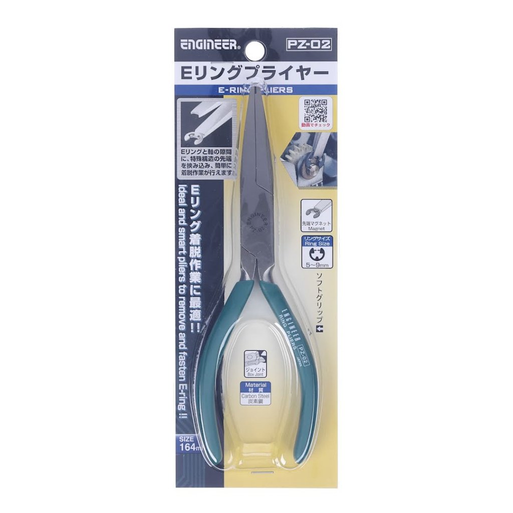 Kleště ENGINEER na pojistné kroužky, model PZ-02, jsou výslovně navrženy pro vkládání a odstraňování pojistných kroužků typu E, které jsou nasazeny na hřídele přesných přístrojů. Tento nástroj je ideální pro údržbářské práce na kancelářském vybavení, disponuje speciální strukturou hrotu, který se zasune do mezery mezi pojistným kroužkem a hřídelem, což umožňuje extrémně snadné připevňování a odstraňování. Jeho hrot je magnetizovaný, což zajišťuje bezpečnější uchopení pojistných kroužků. S rozměry 53 mm šířky, 12 mm výšky a 164 mm hloubky a váhou 130 g je vhodný pro pojistné kroužky o velikosti 6 až 9 mm.