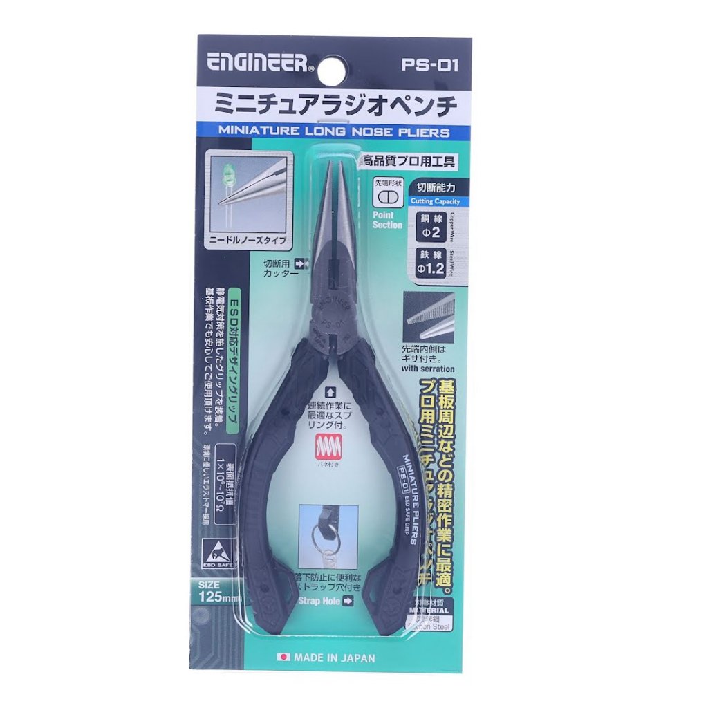 ENGINEER kleště, model PS-01, jsou navrženy pro precizní práci, se štíhlým jehlovým hrotem, který je ideální pro manipulaci s malými čipy a díly. Vnitřní povrch hrotů je vroubkovaný, což zajišťuje pevný úchop bez sklouznutí. Díky pečlivému kalení má tělo vynikající odolnost a ergonomický elastomerový úchop poskytuje pohodlí při používání. Navíc obsahuje ESD bezpečný úchop, což jej činí vhodným pro práci s elektronikou. S délkou 139 mm a hmotností pouhých 68 g tyto kleště kombinují funkčnost a snadné použití pro složité úkoly.