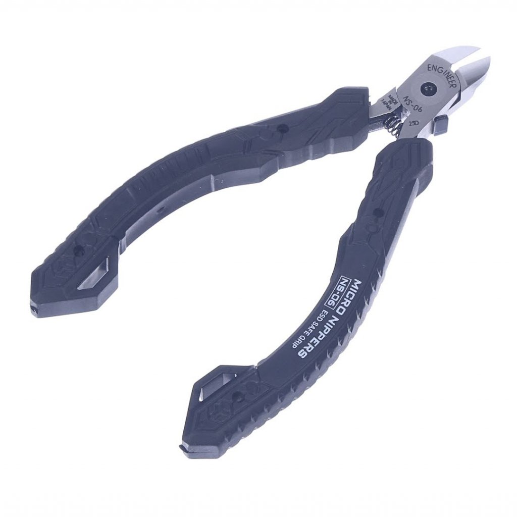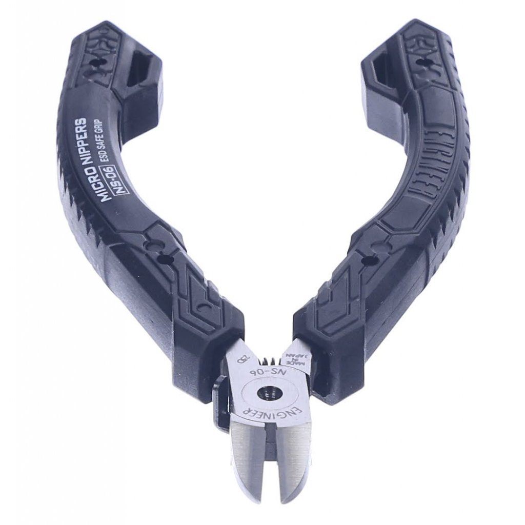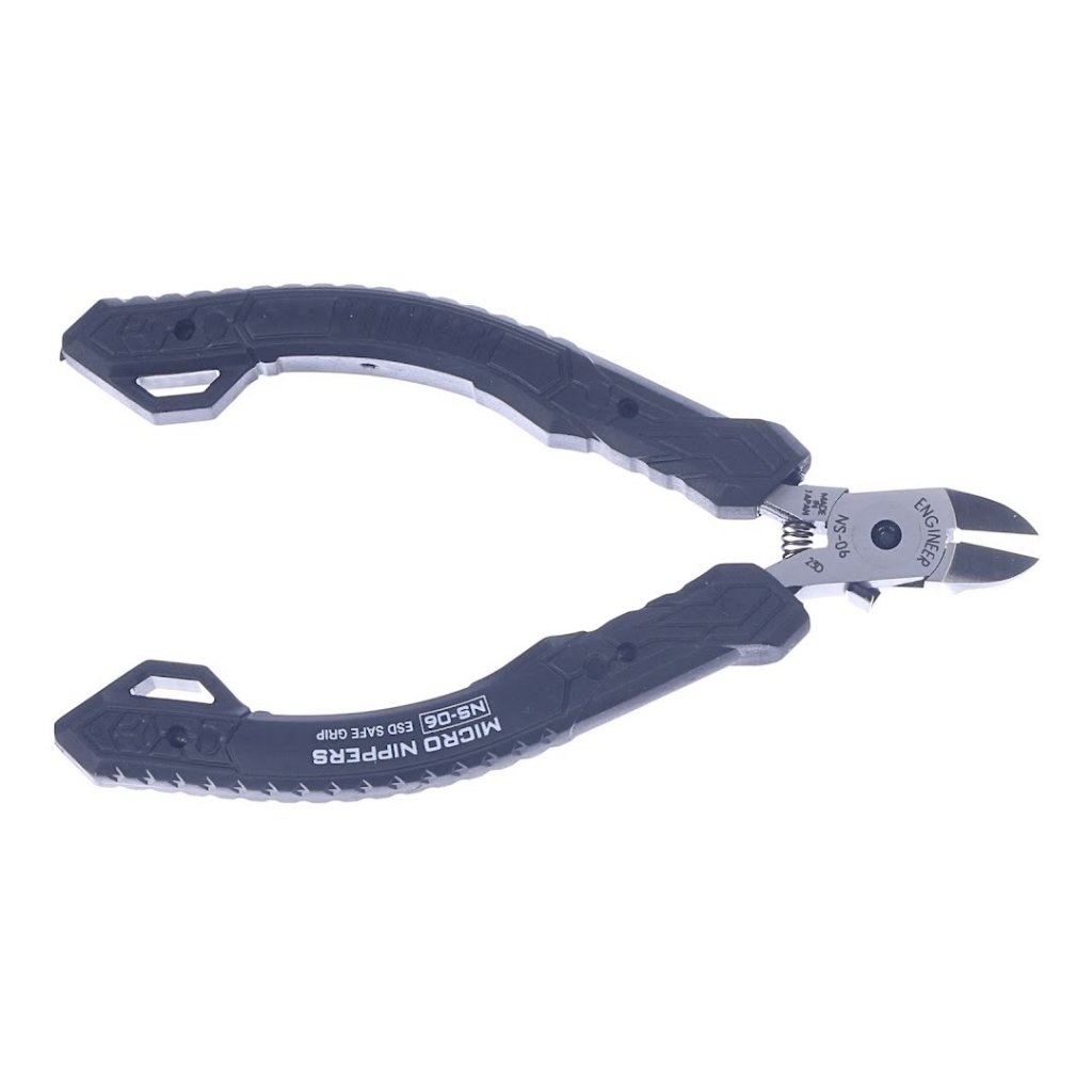 ENGINEER Micro Nippers, model NS-06, je specializovaný nástroj pro precizní práci kolem desek plošných spojů a citlivé elektroniky. Jeho rozměry 112 mm na délku a nízká hmotnost 52 g umožňují snadnou manipulaci a manévrování v těsných prostorech. Tyto kleště jsou výhradně určeny pro stříhání měkkých drátových materiálů, jako je měď, s řeznou kapacitou až 0,8 mm v průměru. Disponují nastavitelným otvorem čepele s pružinou, která zabraňuje uvolnění, což zajišťuje hladké a přesné řezy. Rukojeti jsou vyrobeny z ekologicky šetrné elastomerové pryskyřice, poskytující pohodlný a bezpečný úchop.
