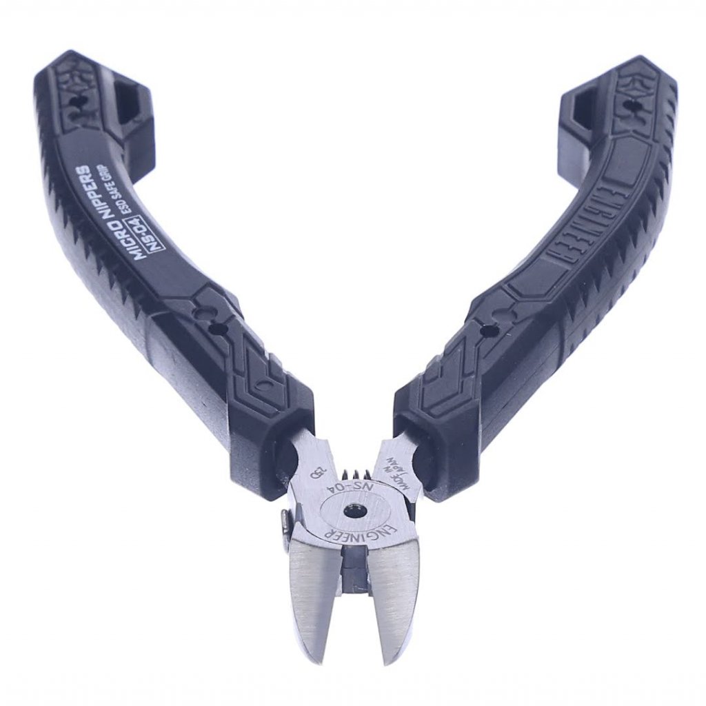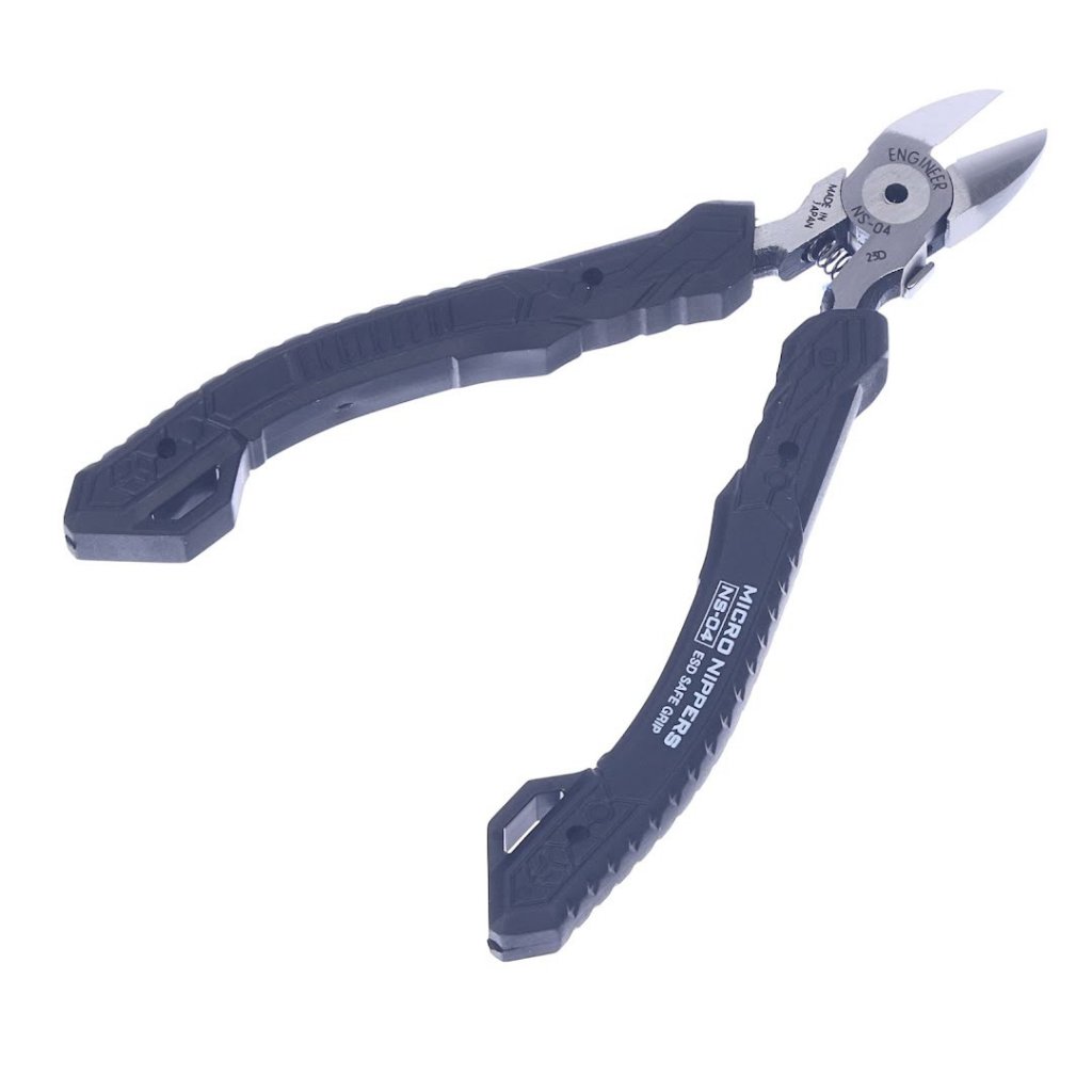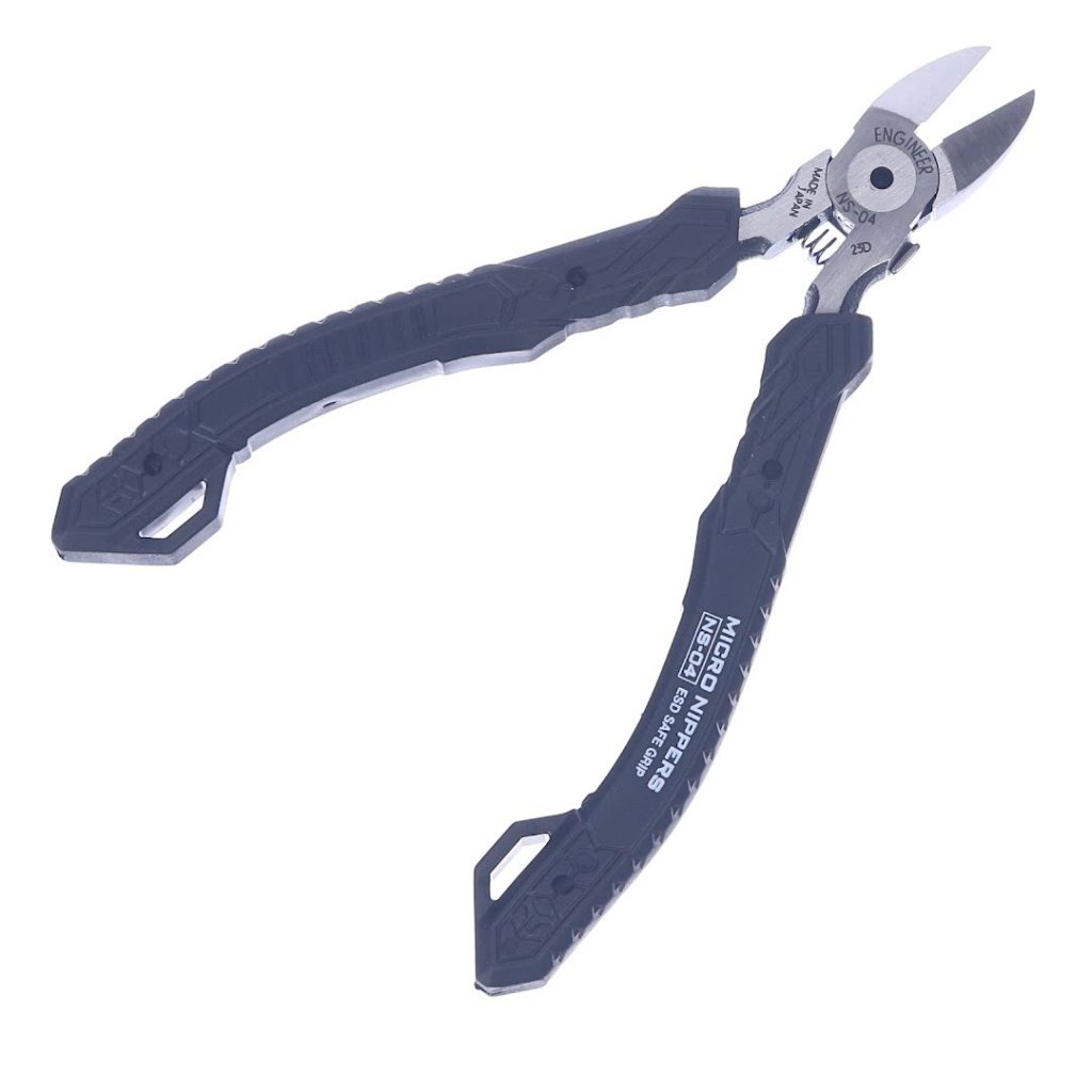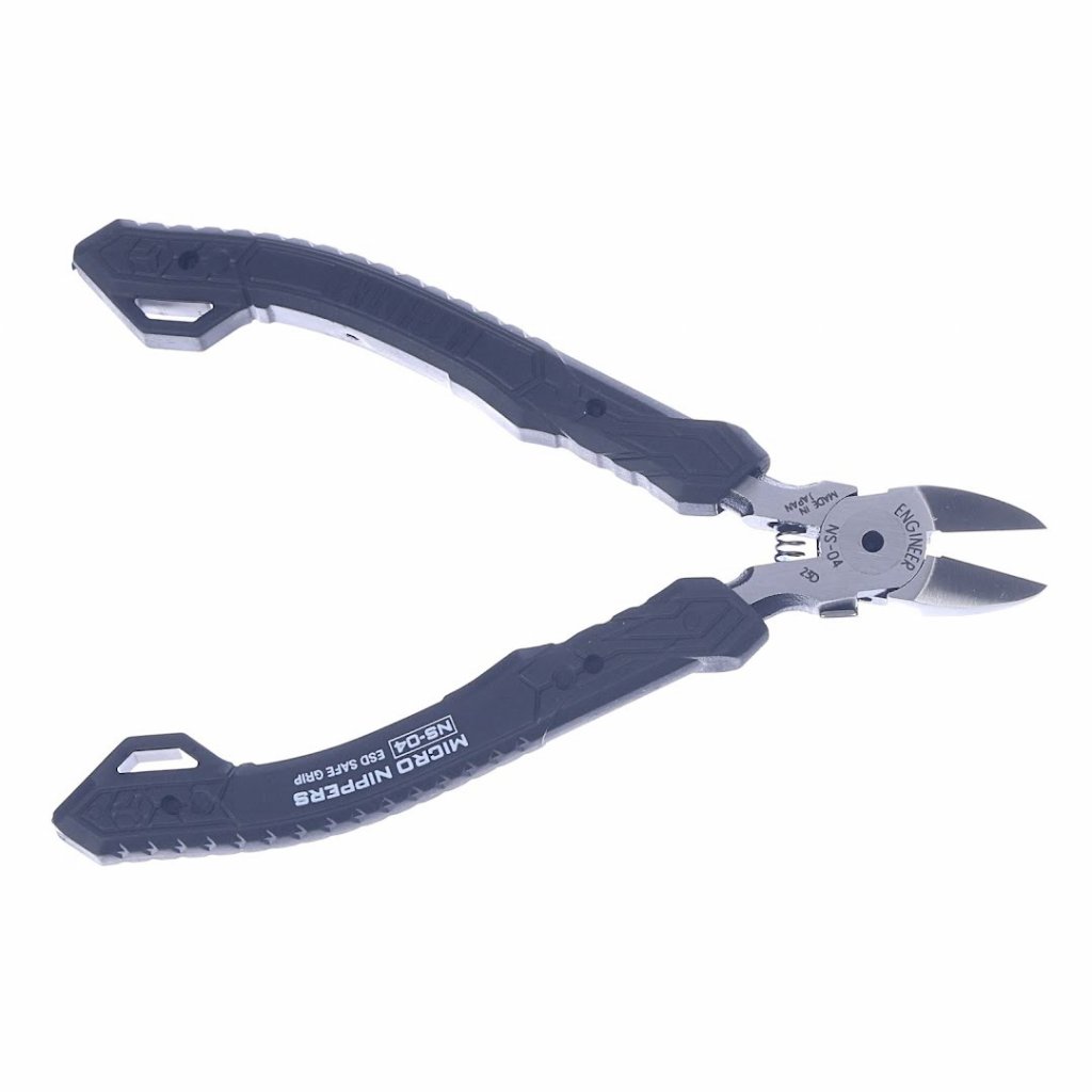 ENGINEER Micro Nippers, model NS-04, jsou kompaktní, ale výkonný nástroj pro přesnou práci na deskách plošných spojů. Jejich malá hlava umožňuje optimální provoz v těsných prostorech, zajišťující pokaždé přesné řezy. Ostrá, plně zarovnaná řezná hrana je pečlivě tvrzená, což zajišťuje výjimečnou ostrost a trvanlivost. Tento model disponuje nastavitelným otvorem čepele s pružinou, která zabraňuje uvolnění, což zvyšuje jeho použitelnost a bezpečnost. Obsahuje také ekologicky šetrný elastomerový úchop, který pohodlně padne do ruky pro větší pohodlí. S délkou 120 mm a váhou pouze 67 g mohou tyto kleště stříhat měděný drát o průměru až 1,2 mm, čímž kombinují funkčnost a snadné použití.