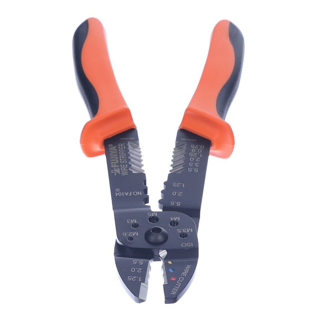FUJIYA Krimpovací kleště, model FA104, jsou nezbytným nástrojem pro profesionály i domácí kutily. Navrženy pro přesnost a snadné použití, jejich ostré čepele zajišťují lepší výkon při stříhání, což usnadňuje práci s odizolováním drátů. Tento všestranný nástroj je ideální pro krimpování izolovaných i neizolovaných koncovek a snadné řezání drátů. Jeho rozměry 58 mm šířka, 22 mm výška a 237 mm hloubka a hmotnost 300 g činí kleště pohodlnými pro dlouhodobé používání díky dvouvrstvé rukojeti, která snižuje únavu při práci. Ideální pro elektroinstalační práce na strojích, automobilech, elektrických zařízeních a opravách v domácnosti.