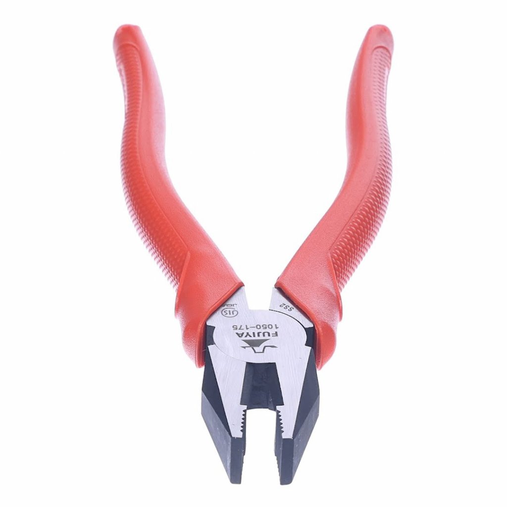 Kombinované kleště FUJIYA, model 1050-175, jsou nezbytným nástrojem navrženým pro různé aplikace, od elektrotechnických a telekomunikačních prací po stavebnictví, inženýrství, montáže a opravy strojů. Vyrobeny ze speciální oceli vyvinuté společností FUJIYA, nabízejí vynikající ostrost a odolnost, což je činí vhodnými pro profesionální i domácí použití. Kleště mají protiskluzový zoubkovaný povrch pro pevné uchopení materiálů a otvor pro připevnění bezpečnostního lana, který zabraňuje jejich pádu. S řeznou kapacitou 3,0 mm pro železný drát a 3,5 mm pro měděný drát, a celkovou délkou 175 mm, je tento nástroj optimalizován pro preciznost a efektivitu při různých úkolech.