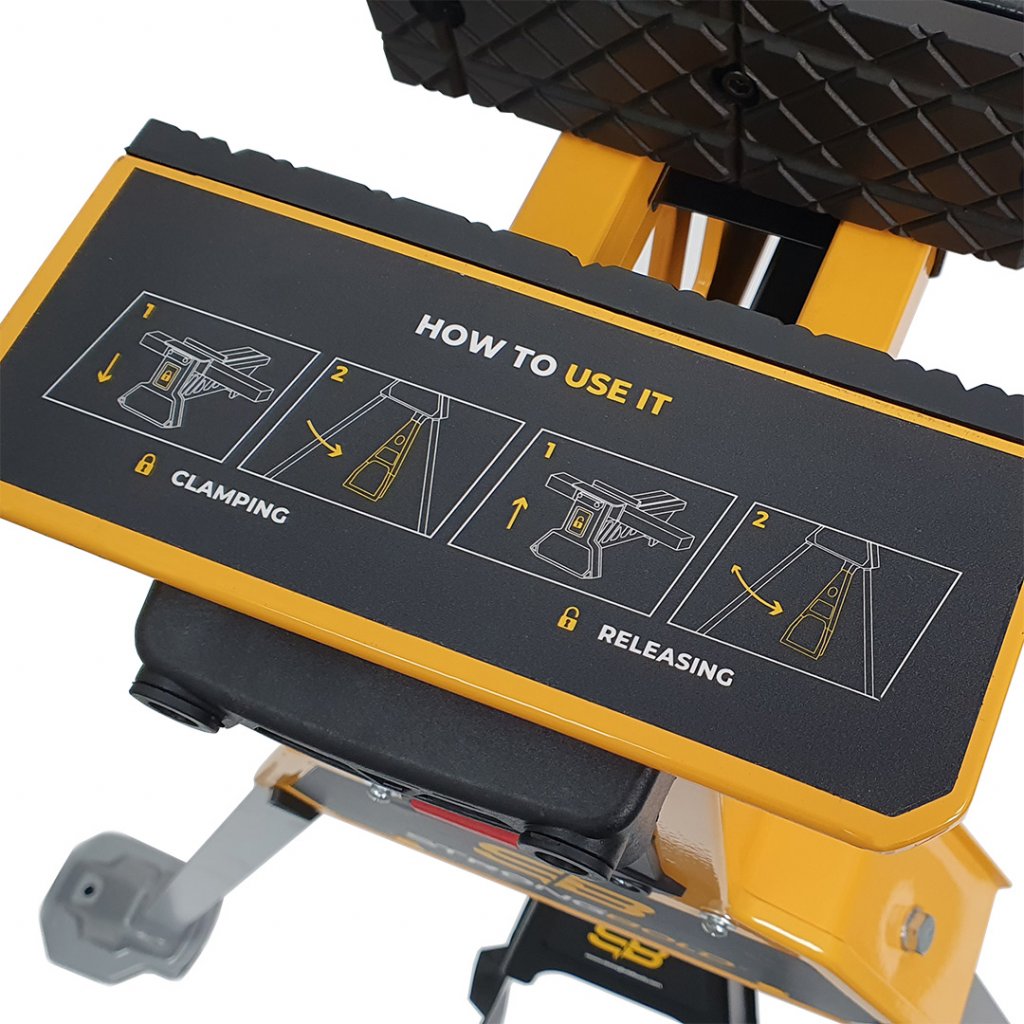 Robustní přenosný svěrák a pracovní koza od značky STRONGBOLD. Umožní upnutí pracovního materiálu až do šířky 95 cm při upínací síle 10 kN (1 tuny). Čelisti lze ovládat...