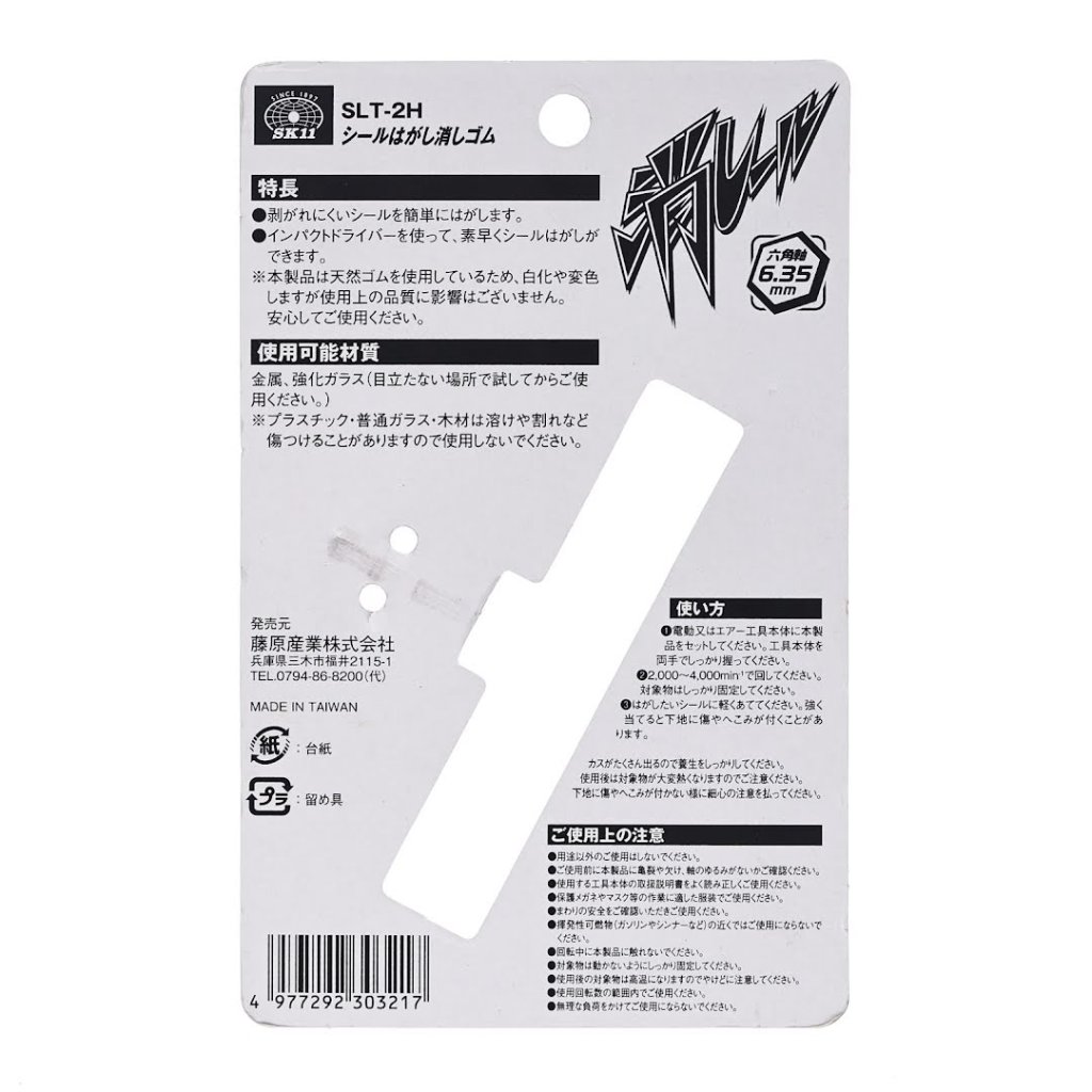 Gumový brusný kotouč SK11, model SLT-2H, je navržen tak, aby usnadnila a urychlila odstraňování štítků a zbytků lepidla. S šestihrannou stopkou 6,35 mm lze tento nástroj snadno připojit k jakémukoli aku šroubováku nebo vrtačce. Tvrdý materiál zajišťuje, že odstraníte i velice zaschlé zbytky lepidel. Vhodné pro použití na kov a tvrzené sklo.