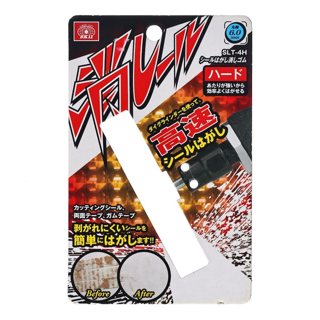 Gumový brusný kotouč SK11, model SLT-4H, usnadňuje odstraňování odolných etiket a zbytků lepidla. Stačí připojit k vrtačce nebo brusce a nechat rotaci vykonat práci. Tento tvrdý typ gumy účinně eliminuje náročné zbytky lepidla. Má průměr dříku 6 mm a je vhodný pro použití na kovových a skleněných površích. Před použitím vždy otestujte na nenápadném místě.