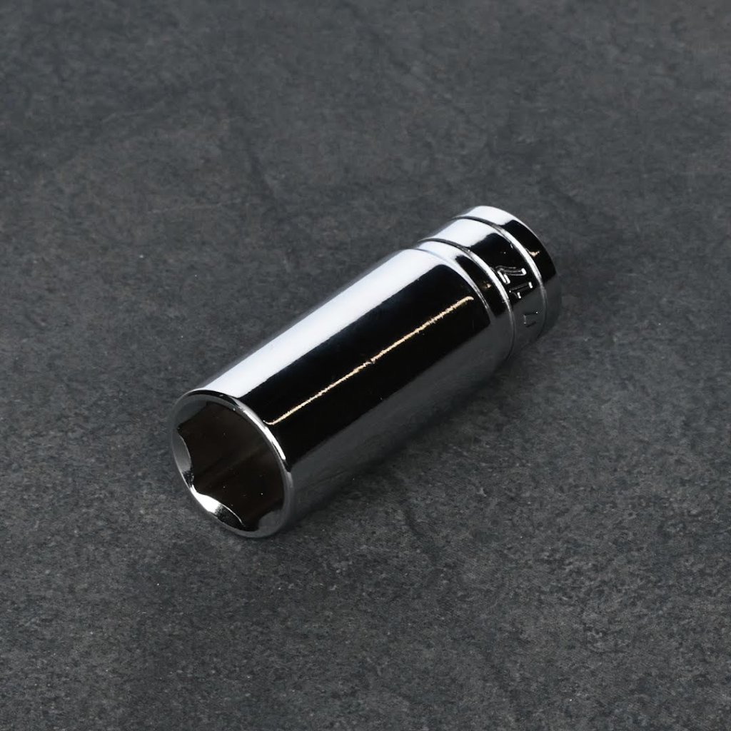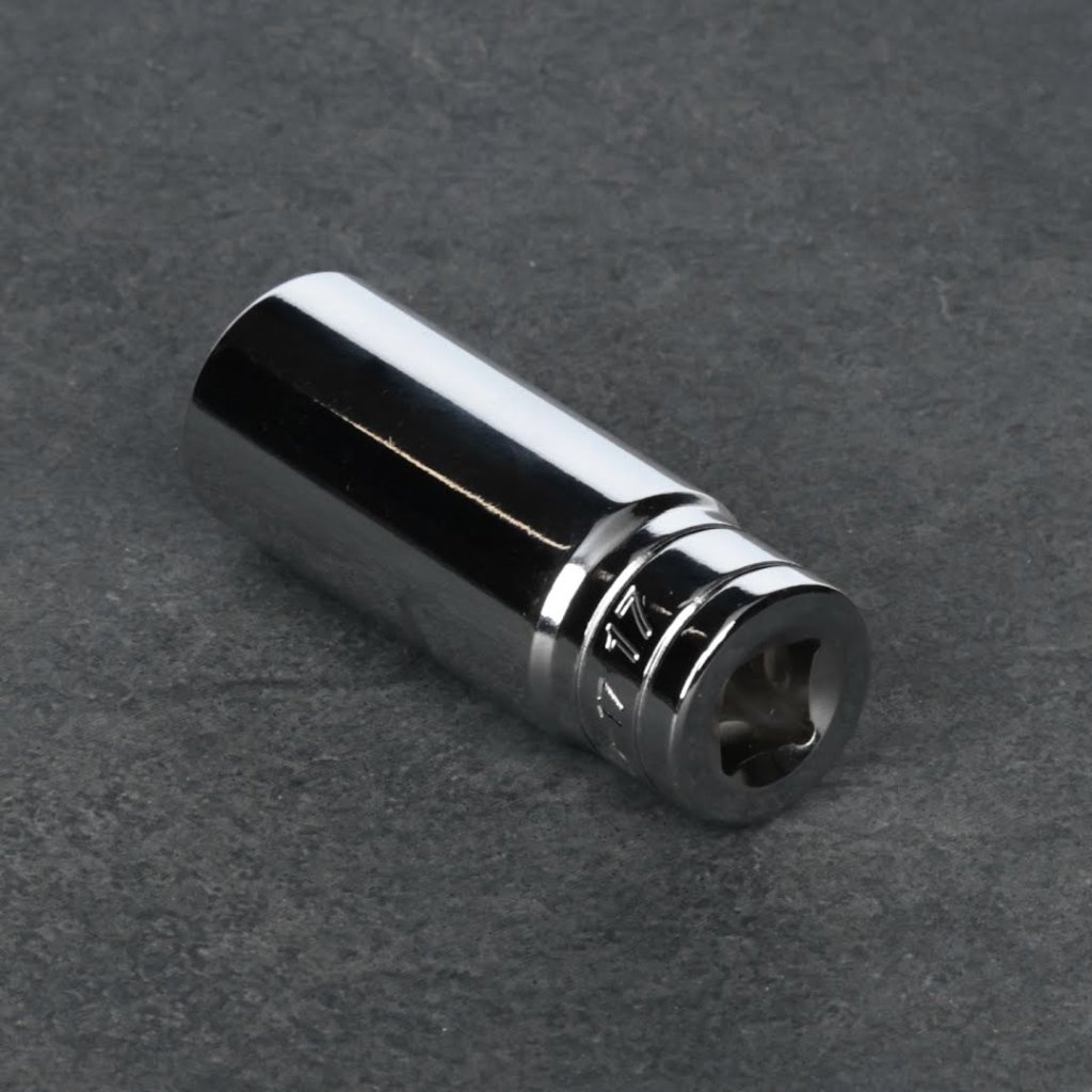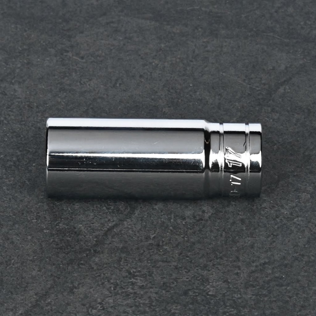 Hluboká šestihranná hlavice od značky SK11, model S3D-17, je všestranný nástroj pro utahování a povolování šestihranných šroubů a matic. Tato hluboká hlavice je ideální pro matice a šrouby v zapuštěných oblastech. Má 9,5 mm (3/8 palce) upínání a 17 mm velikost hlavice, a splňuje normy ANSI a DIN.