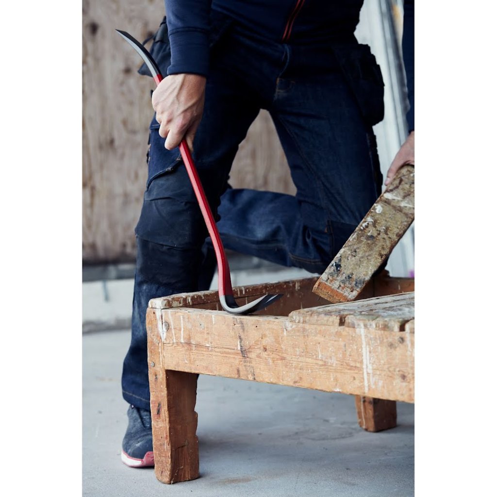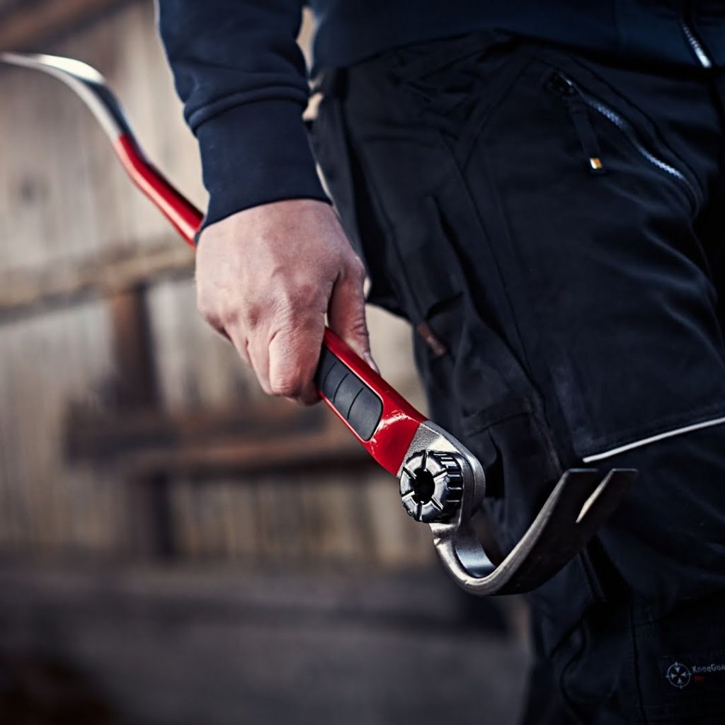 Kloubový dráp lze nastavit do devíti různých poloh, takže vždy najdete ideální úhel pro danou práci a snadno se dostanete i do těsných prostor. Široké, tenké konce minimalizují poškození povrchu a umožňují práci ve stísněných místech, zatímco ergonomická rukojeť s gumovým potahem zajišťuje pohodlný a bezpečný úchop i při delším používání. Samotný dráp je optimalizovaný pro snadné vytahování hřebíků a zahnutá sekce dláta chrání vaše ruce před zraněním při skřípnutí.