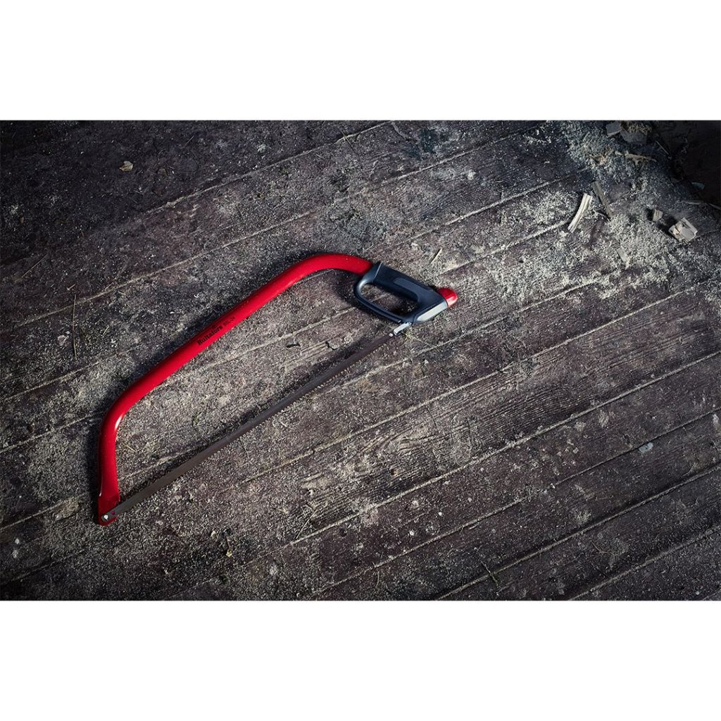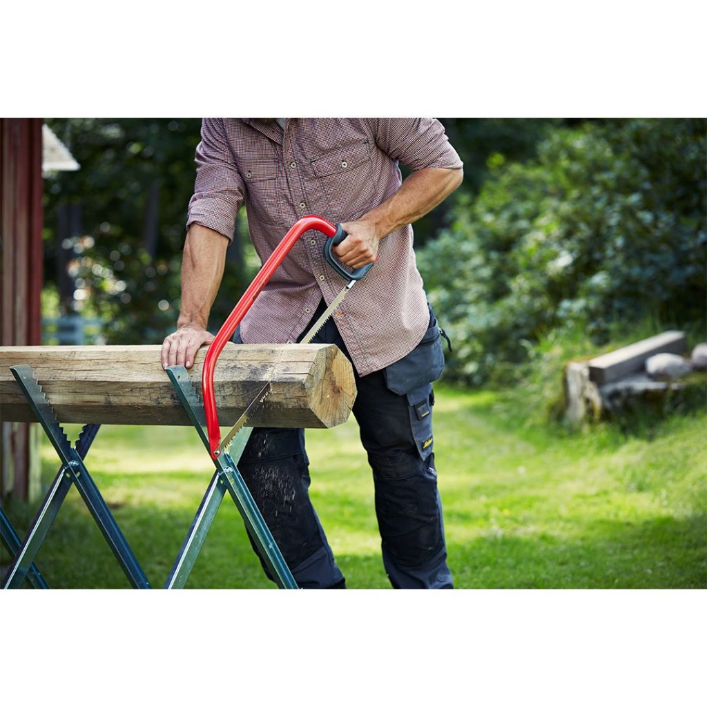 Odolný ocelový rám je opatřen speciálním nátěrem proti korozi, který zajišťuje dlouhou životnost nástroje i při častém používání ve venkovním prostředí. Pilový list je vyroben z vysoce kvalitní oceli C75 a jeho indukčně tvrzené zuby zaručují mimořádný řezný výkon a dlouhotrvající ostrost bez nutnosti broušení. Díky univerzálnímu ozubení si pila snadno poradí se suchým i čerstvým dřevem.