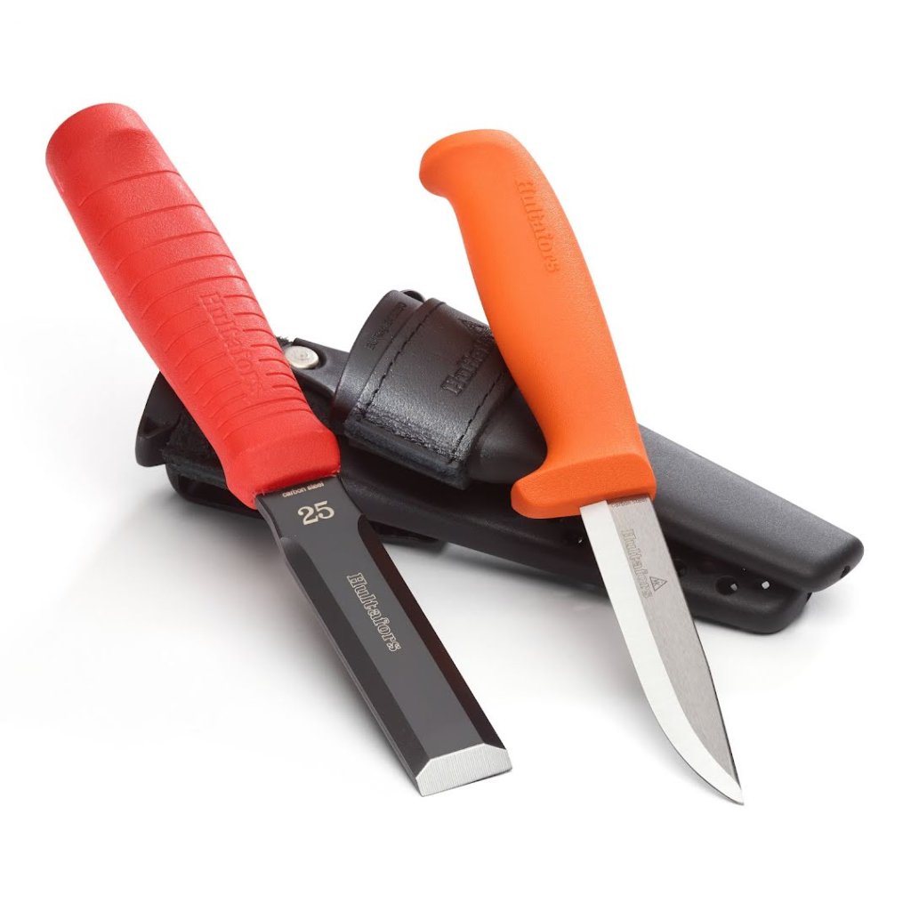 Pro rychlé a efektivní zvládnutí jakéhokoli úkolu je klíčové mít správné nástroje okamžitě po ruce. Sada HULTAFORS s dvojitým pouzdrem, dlátem EDC 25 a řemeslnickým nožem HVK byla navržena přesně pro tento účel. Poskytuje vám neustálý přístup ke dvěma nejoblíbenějším nástrojům, které ocení profesionálové i nároční kutilové.