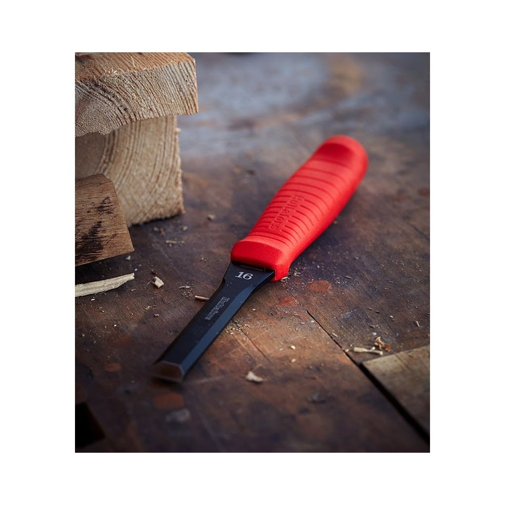 Srdcem dláta je precizně broušená čepel vyrobená z prvotřídní japonské oceli, která zaručuje mimořádnou a dlouhotrvající ostrost. Díky tomu je nástroj ideální pro jemné práce, jako je začišťování spojů, ale zároveň dostatečně robustní pro náročnější úkoly včetně páčení nebo sekání. Masivní rukojeť je navržena tak, aby bez problémů snesla i silné údery kladivem, což umožňuje efektivní přenos síly. Pro maximální životnost je čepel ošetřena elektroforetickým povlakem (EPD), který ji spolehlivě chrání proti korozi.