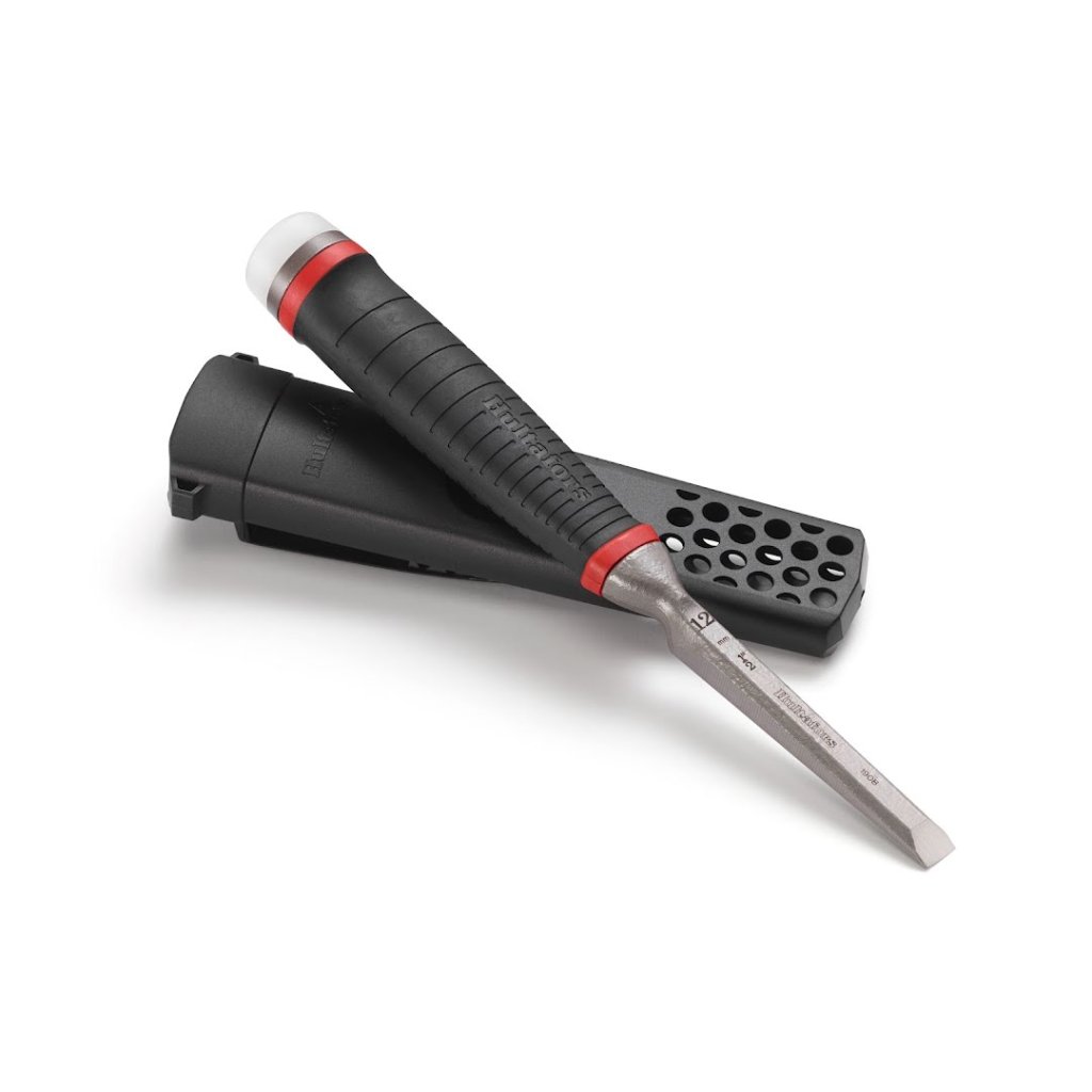 Čepel dláta je broušena pod úhlem 25°, což představuje ideální kompromis mezi vynikající ostrostí a vysokou odolností ostří. Dokonale rovná spodní strana čepele umožňuje přesné vedení nástroje po povrchu materiálu, což je klíčové pro čisté a rovnoběžné řezy. Ergonomicky tvarovaná rukojeť ze Santoprenu poskytuje bezpečný a pohodlný úchop, snižuje únavu při delší práci a vyměnitelný nylonový úderník efektivně prodlužuje celkovou životnost nástroje.