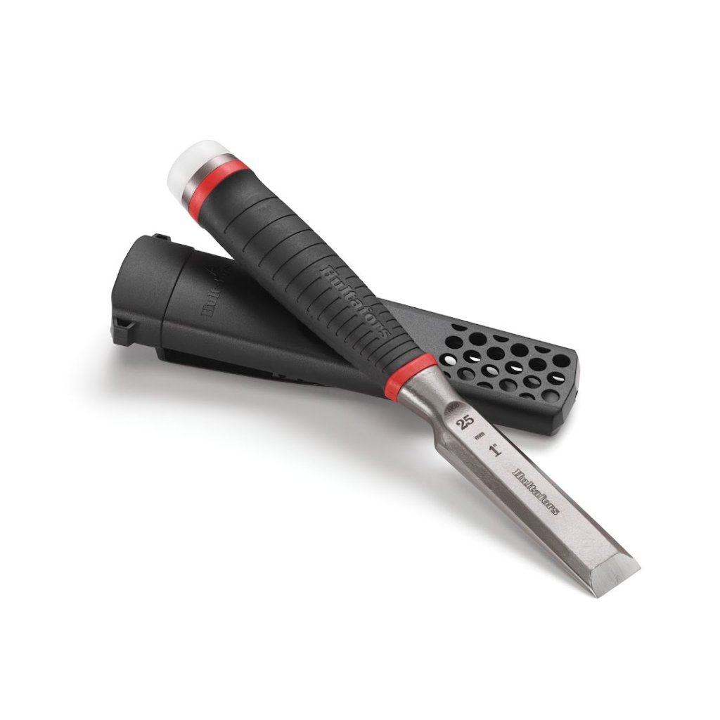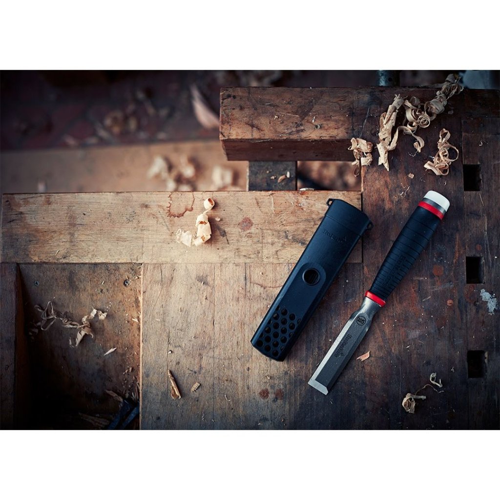 Pohodlí při práci zajišťuje ergonomická rukojeť ze Santoprenu, která dobře padne do ruky, zatímco nárazuvzdorný nylonový úderník lze jednoduše vyměnit, když se opotřebuje. Praktické pouzdro umožňuje mít dláto vždy po ruce – na opasku nebo připnuté na knoflík. Investujte do nástroje, který obstojí i v těch nejtěžších podmínkách a pozvedne vaše řemeslo na vyšší úroveň.