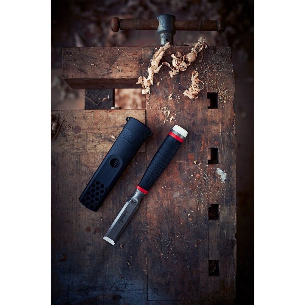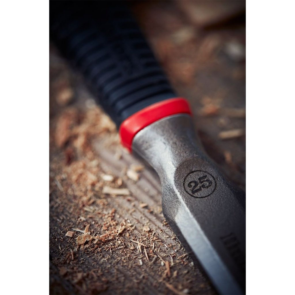 Dláto je vykováno z jednoho kusu oceli s pevným I-profilem, což zajišťuje maximální přenos síly přímo do materiálu a poskytuje vynikající páku i odolnost vůči zlomení. Díky ploché spodní straně můžete řezat dokonale rovnoběžně s povrchy, ať už děláte detailní tesařskou práci nebo potřebujete čisté a přesné zarovnání. Řezná hrana se sklonem 25° nabízí ideální poměr mezi ostrostí a odolností, takže dláto zůstává spolehlivě ostré i při intenzivním používání.
