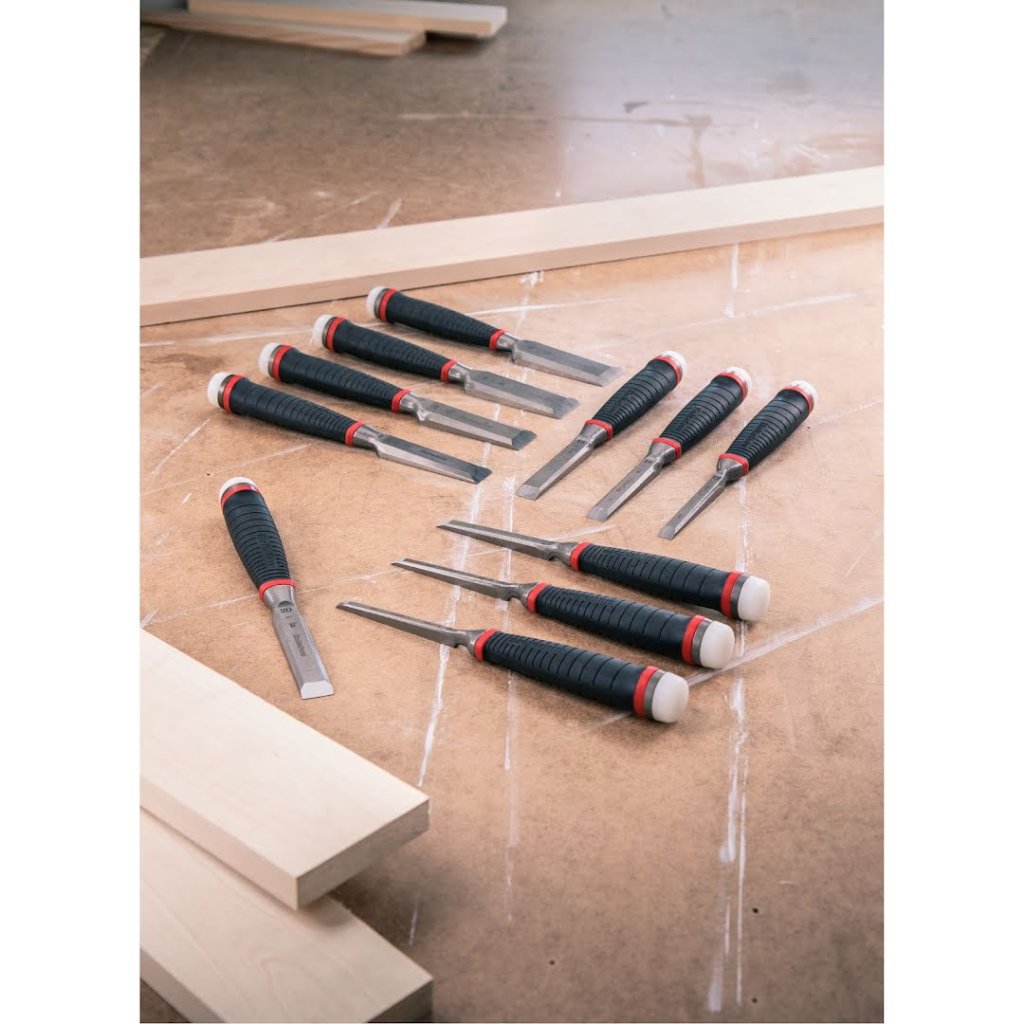 Čepel s úhlem ostří 25° představuje optimální rovnováhu mezi mimořádnou ostrostí a dlouhou životností, což umožňuje opakovaně provádět čisté a přesné řezy. Díky zcela ploché spodní straně čepele i rukojeti je dláto perfektní pro práci v jedné rovině s povrchem. Ergonomická rukojeť z materiálu Santoprene zaručuje bezpečný a pohodlný úchop i při déletrvající práci. Životnost nástroje prodlužuje snadno vyměnitelný nylonový nárazník, který absorbuje údery.
