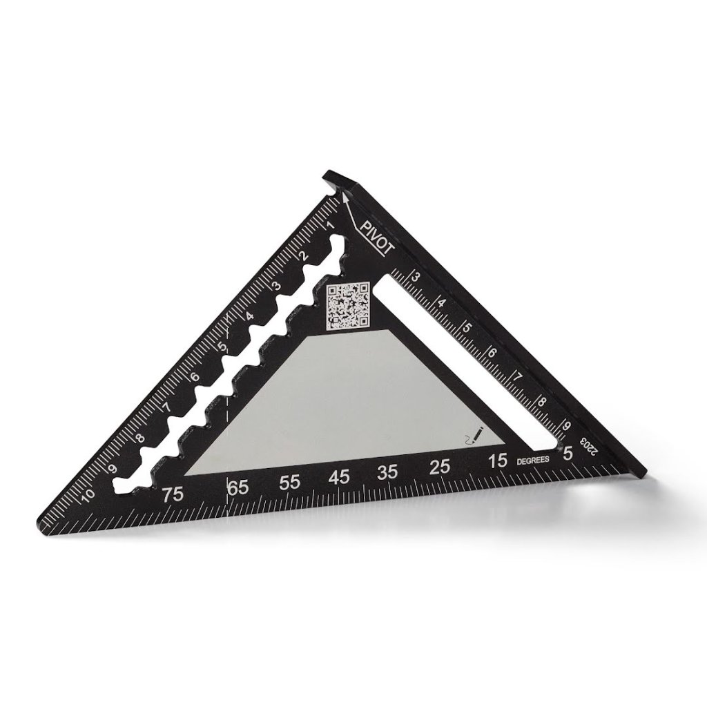 Jeho robustní tělo je vyrobeno z jednoho kusu masivního hliníku a precizně obrobeno na CNC strojích, což zaručuje maximální přesnost a dlouhou životnost. Silná hrana slouží jako spolehlivé vodítko pro pilu při provádění rovných i úhlových řezů. Laserem gravírované stupnice v milimetrech jsou skvěle čitelné a odolné proti opotřebení. Praktické označovací zářezy umožňují rychlé rýsování tužkou nebo přesné vedení nože, například při řezání sádrokartonu. Úhelník lze navíc využít jako úhloměr pro snadné značení běžných úhlů.